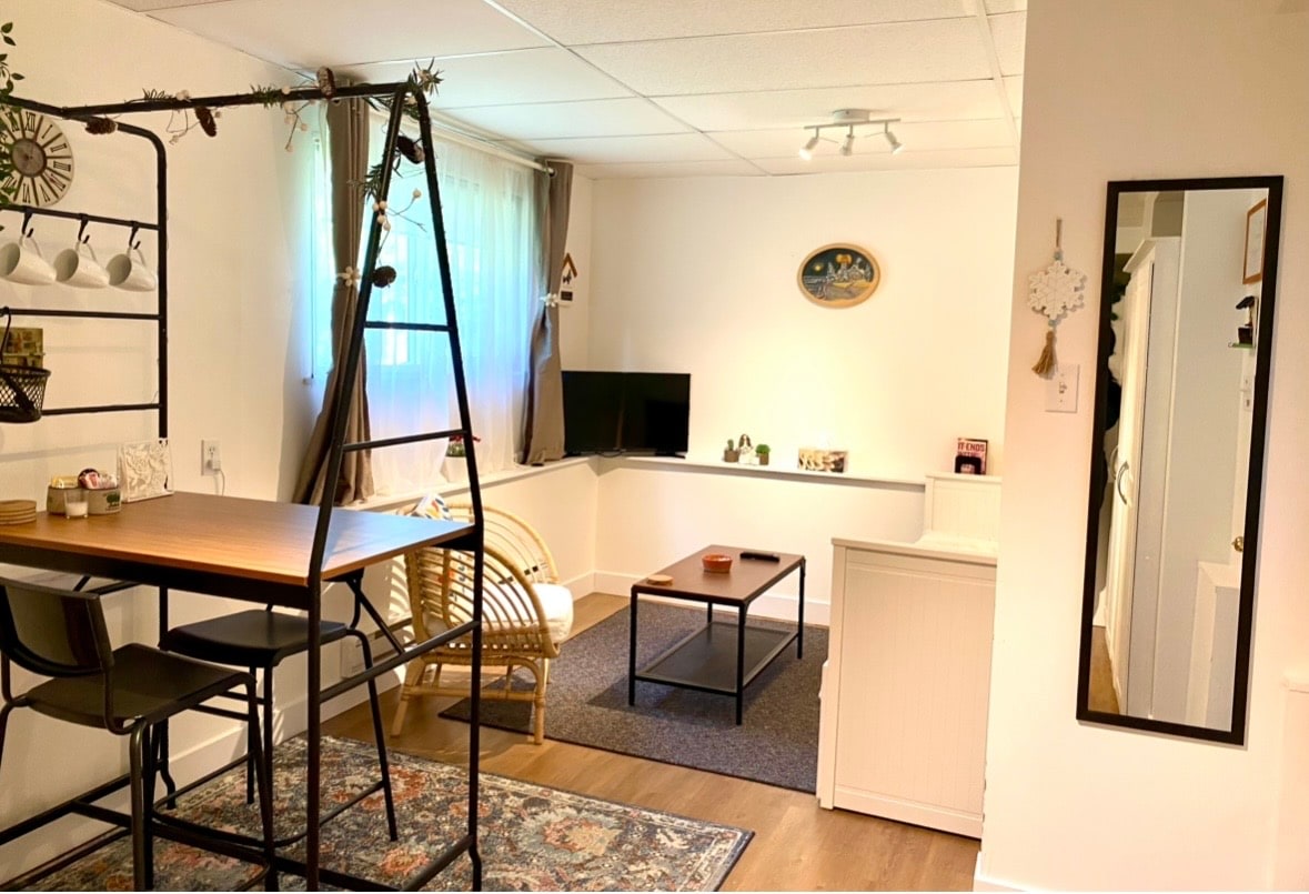 This is a private first-floor (ground-level) suite in a detached home, not an underground basement. The space is bright, well ventilated, and approximately 1,300 sq ft, ideal for short- to mid-term stays. The suite has a separate private entrance, and all areas shown in the photos are for guest use only, with no shared indoor space. The kitchen and bathroom are fully equipped. The host lives upstairs and is available if needed while respecting guest privacy.