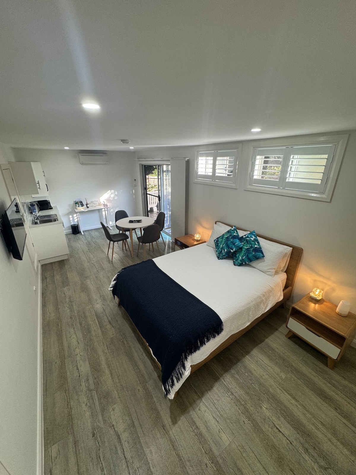 Moderna, samostalna jedinica u neposrednoj blizini centra grada. Ova jedinica visokih specifikacija sa privatnim ulazom nudi potpuno opremljenu kuhinju i dnevni boravak otvorenog tipa. Ima svu udobnost sa 2 klima-uređaja, kompletnu opremu za pranje veša, moderno kupatilo sa kupatilom pune veličine i mnogo prirodnog svjetla. Sa jednom glavnom spavaćom sobom i opcijom za zasebnu sobu sa zavjesama, ova jedinica može da primi do 4 osobe. Privatno skladište u sklopu objekta dostupno za predmete za rekreaciju (obavezna je najava).