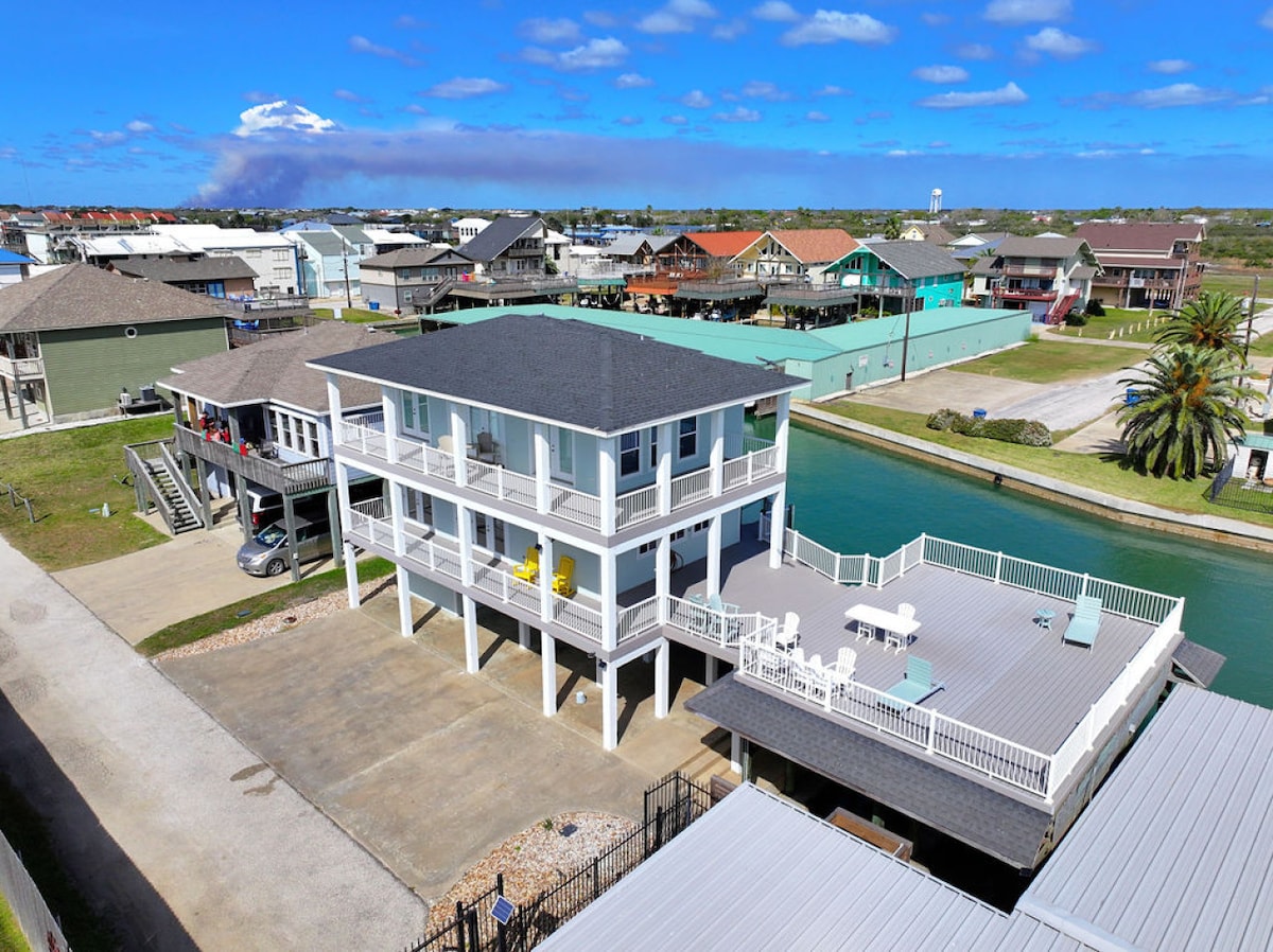 The Best Kept Secret on the Texas Coast, "POC" Nestled off the beaten path, Twin Pines offers the perfect place for your large group or family! The house is on a double lot so there is plenty of room for your vehicles and boats. There is ability for full drive through access so no worries about backing in your boat.