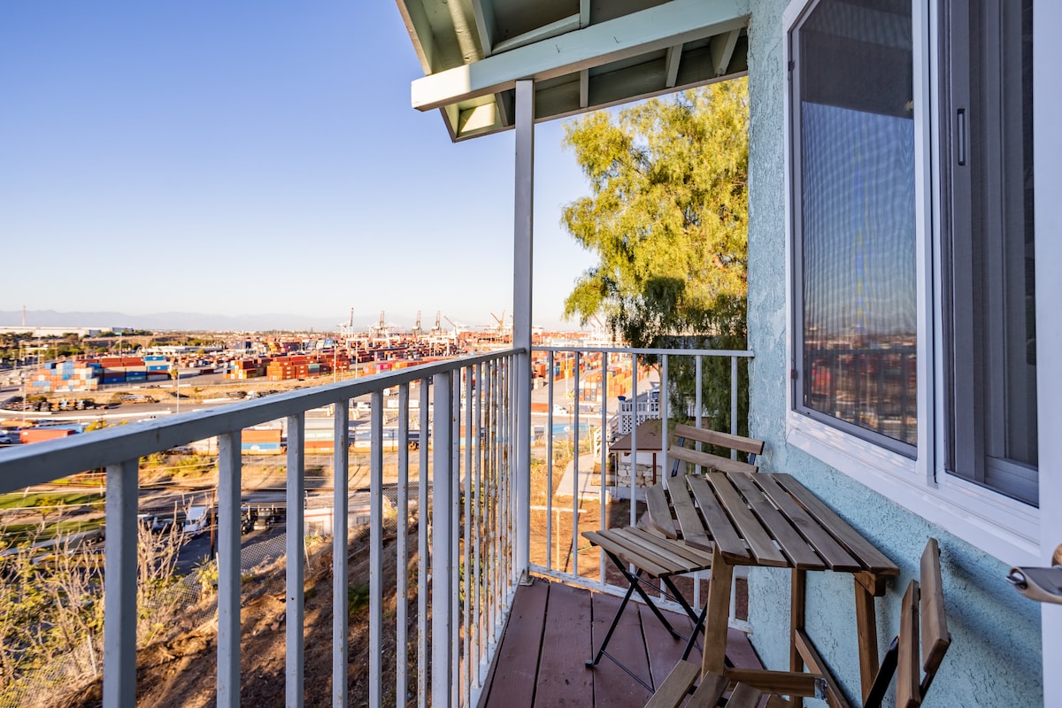 Nedavno renoviran 2 BR, 1 BA dom u Sautbej području Los Anđelesa sa jedinstvenim panoramskim pogledom na luku na istoku, Palos Verdes Hill na zapadu; na jasan dan planinskog lanca San Gabrijel u daljini. Mnogo sadržaja, uključujući kompletnu kuhinju, balkon, unutrašnje dvorište, mašinu za pranje i sušenje veša i parking. Dva bračna kreveta su udobna, a kauč na razvlačenje može da primi još dva gosta. U blizini plaže, terminala za krstarenje, Tramp National, Wayfarers, Terranea, Point Vicente, La Venta, Universal Studio i Disney.