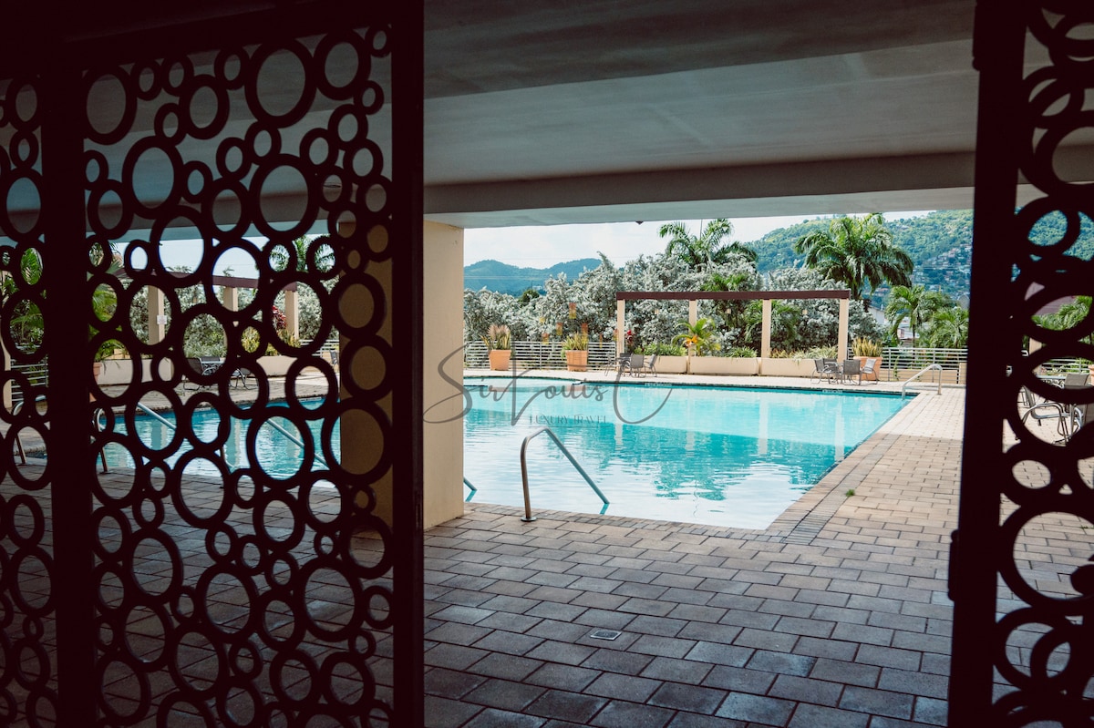 Dobro došli u luksuzni kondominijum sa sadržajima na moru - vaš tropski odmor! Ovaj prostrani kondominijum 2BR/2BA ima 1 bračni krevet i 2 bračna kreveta sa danonoćnim obezbjeđenjem, bazenom, teniskim terenima i igralištem. Uživajte u zadivljujućem zalivu i padini, na samoj obali mora. Ovaj smještaj u stilu odmarališta ima sve! Savršeno za porodice ili grupe (do 6 gostiju). SPECIJALITET KARNEVALA: paket za 10 noći Budite blizu zbivanja! 10 noćenja | Do 6 gostiju | 7.650 USD Rezervišite sada i proslavite karneval u udobnosti i stilu!