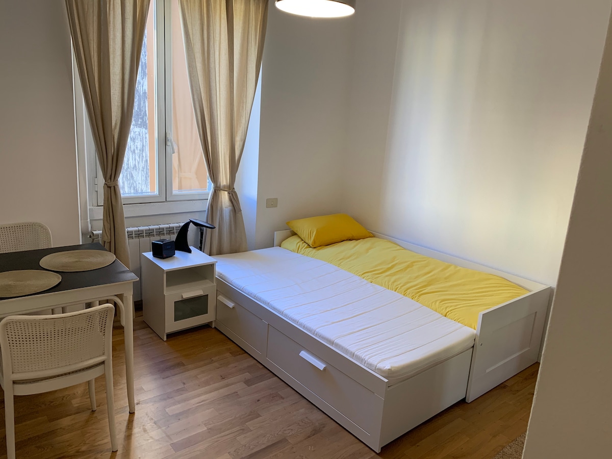 Very central and strategically located space consisting of a double bedroom, relaxation area, full bathroom and delightful terrace. It does not have a full kitchen but a small fridge, microwave, kettle, Nespresso and breakfast items. A few steps from the Central Station, it is served by the Red Metro, trams and buses, but also a fifteen minute walk from the Duomo. Services of all kinds, restaurants, shops make this multi-ethnic area lively and dynamic, all to be explored.