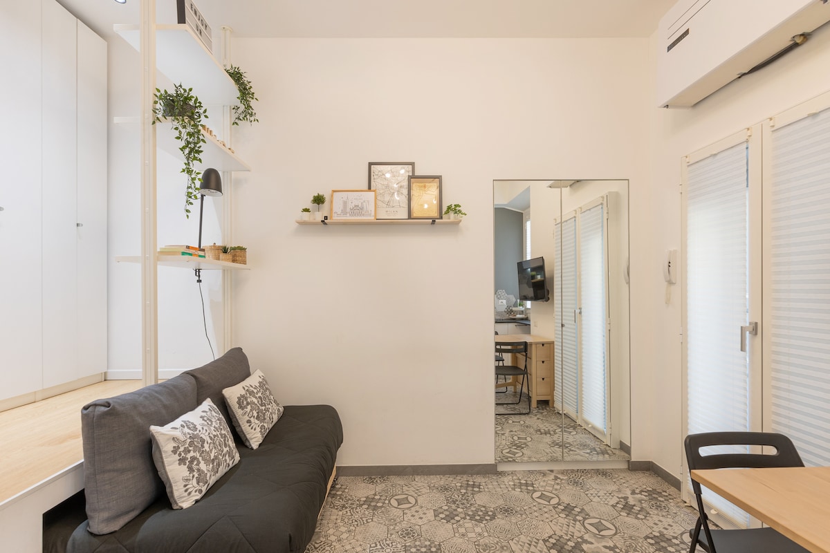 ✨ Pametan, kompaktan životni prostor za bezbrižan boravak u Milanu 🏡 Pametno dizajniran mali studio (20 m2) gde je svaki detalj napravljen da funkcioniše, smešten u mirnom, zelenom unutrašnjem dvorištu istorijske zgrade iz 1830-ih 🛏️ Bračni krevet, potpuno opremljena kuhinja, klima-uređaj, Wi-Fi, pametni TV 🚊 Metro M1 – 1 min | Prigradska železnica – 2 min | Centralna stanica i aerodromski šatl – 17 min | Duomo – 2 km 📍 Porta Venecija: restorani, prodavnice, osnovne potrepštine i park Indro Montaneli su vam nadohvat ruke