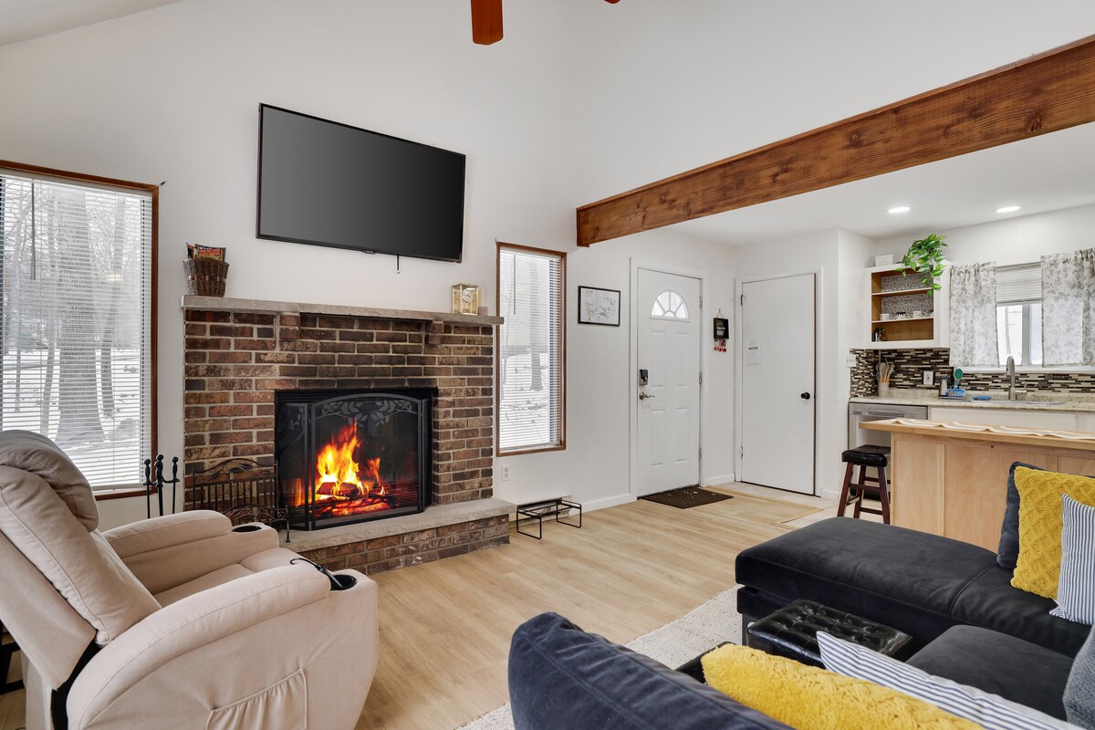 ✨ Unwind under the stars in your private hot tub after exploring Pike County’s waterfalls, trails, and cozy small towns. 💕This modern cabin sleeps up to 10 and features an outdoor stone fire pit, private walking path, nearby creek, indoor fireplace and peaceful wooded setting. 🌲Inside, enjoy a fully stocked kitchen, wood stove, coffee bar, and stylish, comfortable living spaces—perfect for families, couples, or groups seeking relaxation, adventure, and connection.🏡