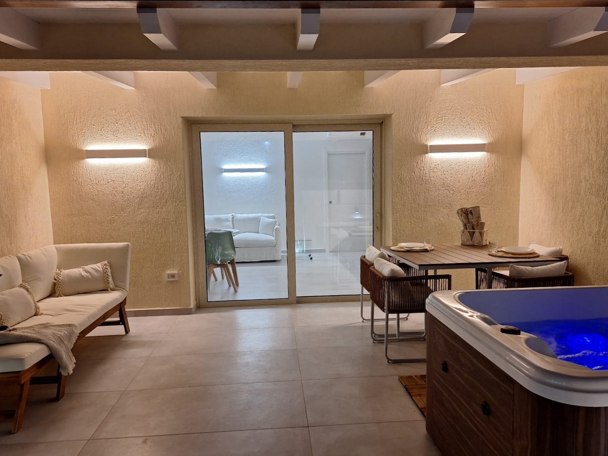 Apartman se nalazi u području Monte Controls u Porto San Paolo, iz kojeg možete uživati u panoramskom pogledu na more. Apartman se sastoji od dvokrevetne sobe, privatnog kupatila i uređene bašte u kojoj se nalazi hidromasažna kada za ekskluzivnu upotrebu. Smeštaj je potpuno nezavisan. Svaki detalj je odabran kako bi se stvorilo čisto vizuelno iskustvo bez ometanja koje donosi osjećaj trenutnog opuštanja kao u oazi mira.