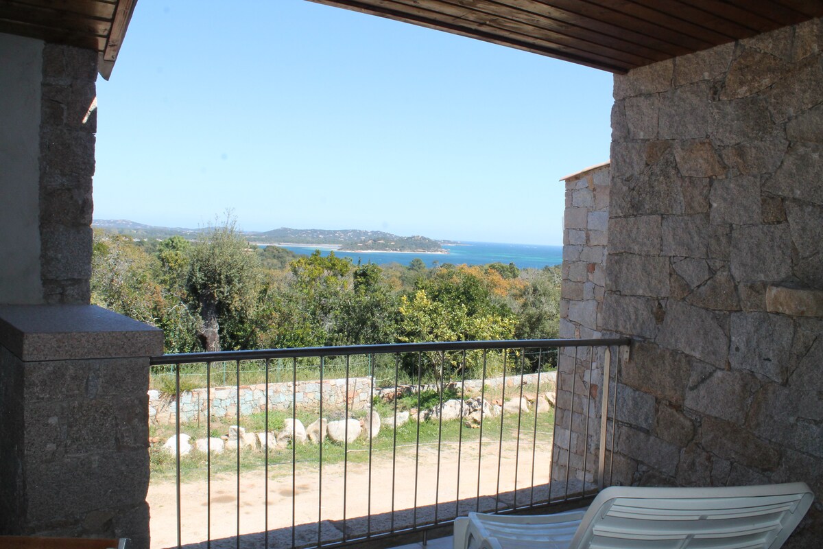 Mini vila za 2 osobe, savršena za odmor za parove. Uživajte u izuzetnom pogledu na more sa svoje privatne terase. Grijani bazen (počevši od aprila) koji se dijeli s drugim gostima. Smještaj je klimatizovan i grijan. Besplatan Wi-Fi. Poznata plaža Palombagđa nalazi se na pješačkoj udaljenosti od vašeg smještaja (10 minuta). Prodavnica prehrambenih proizvoda je udaljena 800 metara i otvorena je tokom vrhunca sezone. Grad Porto Vekio je udaljen 15 kilometara, a Bonifacio je udaljen 30 kilometara.