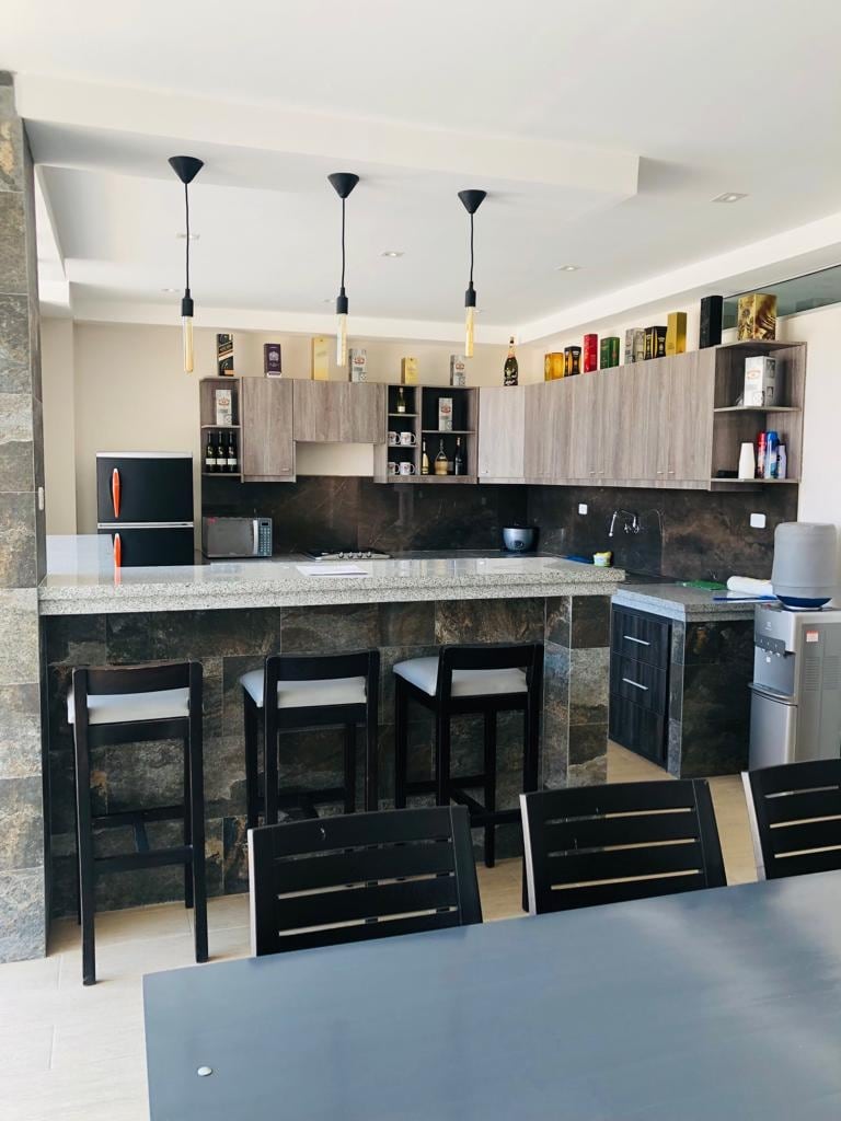 Privatni mini apartman koji se nalazi na trećem spratu porodične kuće, nezavisni izlaz, privatna garaža, nalazi se u privatnom čuvaru urbanizacije 24 sata, u blizini plaže, aerodroma i kopnenog terminala. Ima spavaću sobu sa bračnim krevetom, krevet na sprat i sofu, toplu vodu, klima-uređaj, kablovsku, internet, Wi-Fi, Netflix. Pegla, fen za kosu Mini dnevni boravak, TV, trpezarija, trpezarija, udobna kuhinja opremljena svime i malom privatnom terasom. Ćelija 593-0983591462