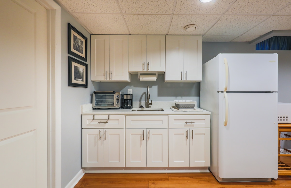 Prostran, moderan, privatni podrumski prostor! 1 spavaća soba/kupatilo, centralno smješteno u Sjevernoj Virdžiniji, 35 minuta od Vašingtona. U blizini lokalnih rezervata prirode, tržnog centra, bolnice i još mnogo toga! Sadržaji: bračni krevet (širine 180-179 cm), 2 dnevna boravka, 2 pametna televizora. Čajna kuhinja: frižider pune veličine, mikrotalasna pećnica, Keurig, friteza, nema šporeta/šporeta. Privatni ulaz, IMAJTE NA UMU: hodaćete kroz travu da biste došli do podruma! Parking na ulici u mirnom dijelu grada. Zabranjeno je pušenje, vaporizatori i e-cigarete.