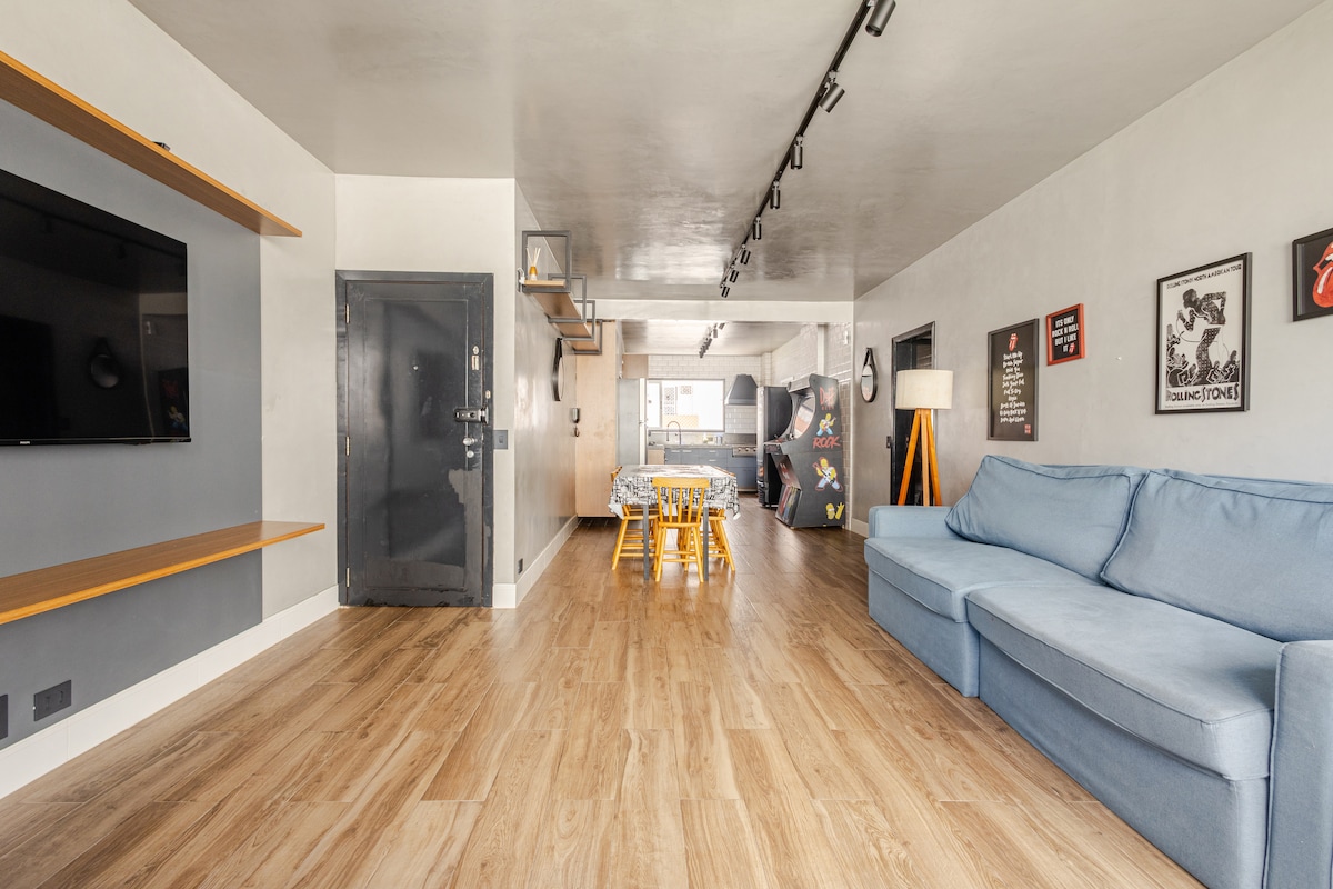 Relaxe neste espaço calmo e cheio de estilo. Mesmo se estiver chovendo você poderá aproveitar a vista infinita, o aconchego do sofá e todos os canais de streaming . O Prédio foi projetado por Artacho Jurado , e é um ícone da arquitetura . A vista do terraço é estonteante. O prédio é cercado facilidades como , padaria, farmácias. Late check out aos domingos. Relax in this calm and stylish space. Even if its raining , you'll able to enjoy the infinite view, cozy furniture and fast internet.