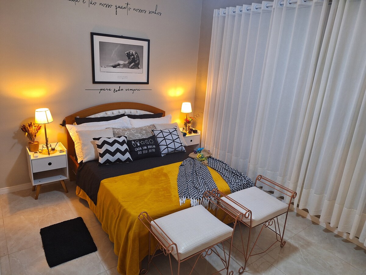 Loft moderno para até duas pessoas em cama queen size, 3 aparelhos de ar condicionado (quente e frio), cozinha completa e espaço home office elegantemente integrados. Não é permitido visitas de terceiros. Uma vaga de garagem pode ser alugada há um custo de R$50,00 a diária, todavia verifique a disponibilidade COM ANTECEDÊNCIA com sua anfitriã. Nessa vaga cabe somente veículo padrão passeio, não cabe caminhonete. Pagamento no dia da chegada pela plataforma do airbnb.