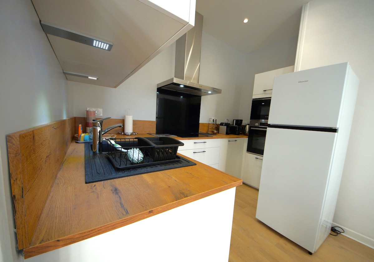 Ova prostrana, ukusno renovirana staja će vas očarati svojom lokacijom usred prirode, u netaknutom okruženju. Terasa od 28m² nudi jedinstvenu panoramu šume, uljuljkani ste zvukom potoka na dnu. Nema TV-a, ali ima knjiga. Svaki detalj je pažljivo osmišljen, sve je toplo. Ovaj smještaj površine 112 m², potpuno opremljen, sa 2 dvokrevetne spavaće sobe, velikim dnevnim boravkom sa umetkom, prelijepa bašta, mjesto je gdje je vrijeme suspendovano. Ne zanemareno.