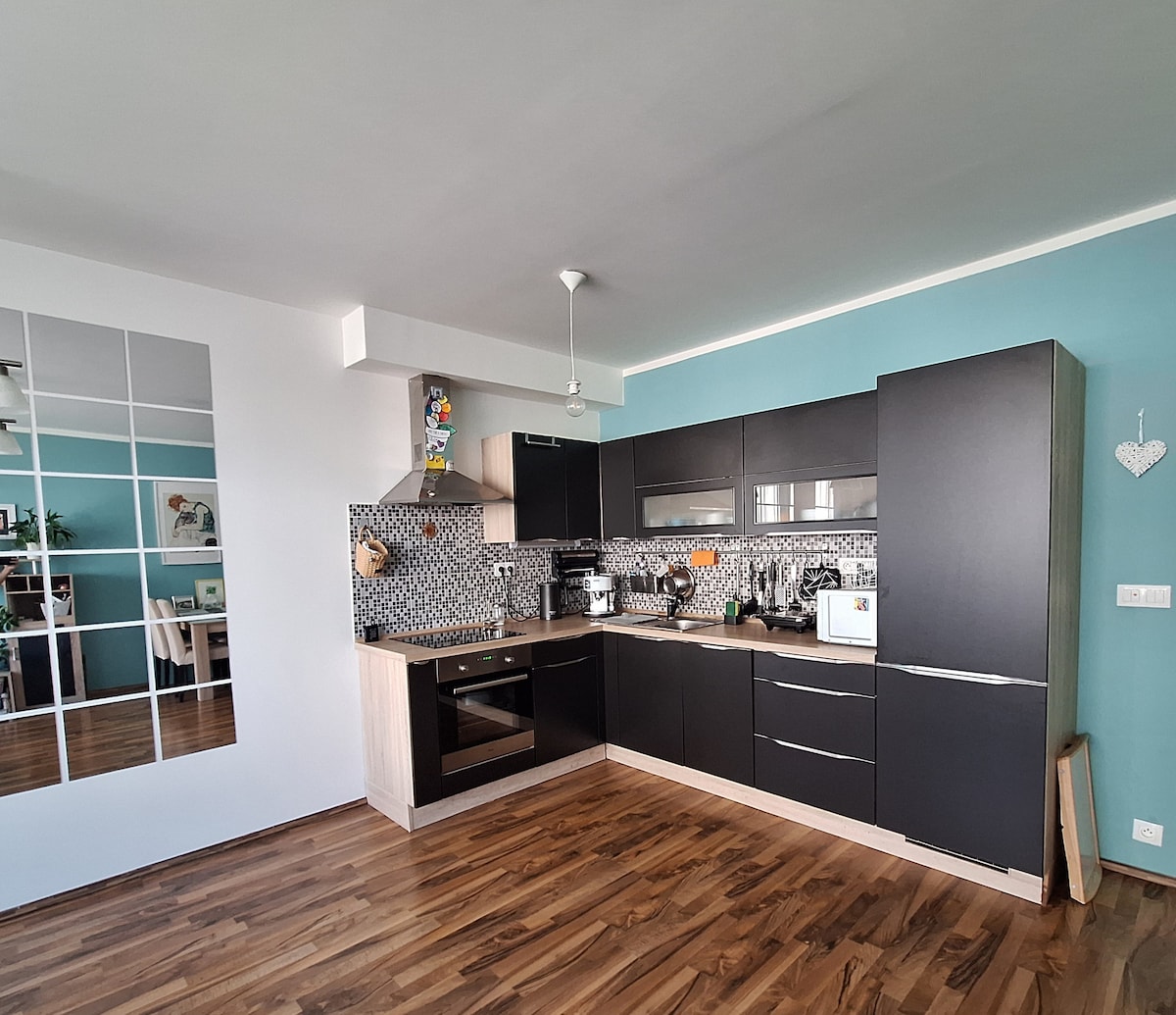 Suncem obasjan stan 2+kk, 52m2 sa lođom 5m2, u stambenom projektu Port Karolína, u centru Praga, uključujući mogućnost podzemnog parkinga u ceni. Stan sa hodnikom, garderobom, tehničkom sobom, kupatilom sa kadom i toaletom. Kuhinja je potpuno opremljena, kuhinjski set sa svim potrebnim aparatima. Odvojeni dnevni boravak ima izlaz na lođu, opremljen je kaučem na razvlačenje, prostorom za odlaganje, TV-om i Wi-Fi-jem. U stanu je odvojena spavaća soba sa bračnim krevetom.