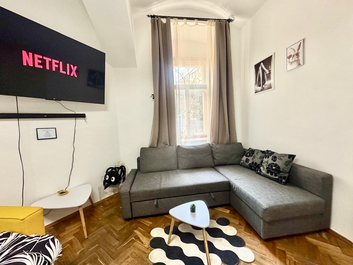 Uživajte u boravku u mom prelepom domu Art Nouveau izgrađenom tokom 1890-ih, ali sa svim modernim sadržajima koje bi se moglo poželjeti. Pažljivo renoviran dvosoban stan sa velikim prostranim sobama sa istorijski visokim plafonima ukrašenim ukrasnim štukaturama, bračnim krevetima, brzim internetom i velikim prostranim kišnim tušem. Idealno mjesto koje možete nazvati domom dok ste u Pragu za dugi vikend, poslovno putovanje ili zašto ne biste uživali u dugom boravku. Neka moje recenzije govore same za sebe!