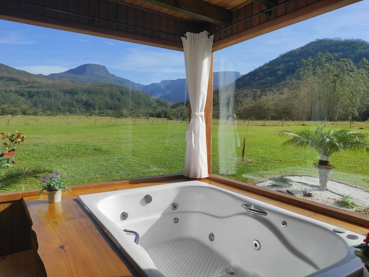 Planinska koliba je mjesto gdje možete da provedete prijatne trenutke sa ljudima koje volite. Nalazi se usred atlantske šume, na površini od 5.000 m2, ograđena, gdje možete imati privatnost, daleko od vreve i vreve gradova. Možete odvesti kućne ljubimce u dvorište i prošetati okolinom. Brvnara je opremljena za pripremu roštilja na otvorenom ili čak doručka na terasi, sa rajskim pogledom. Dođite da se upoznate, čekamo vas