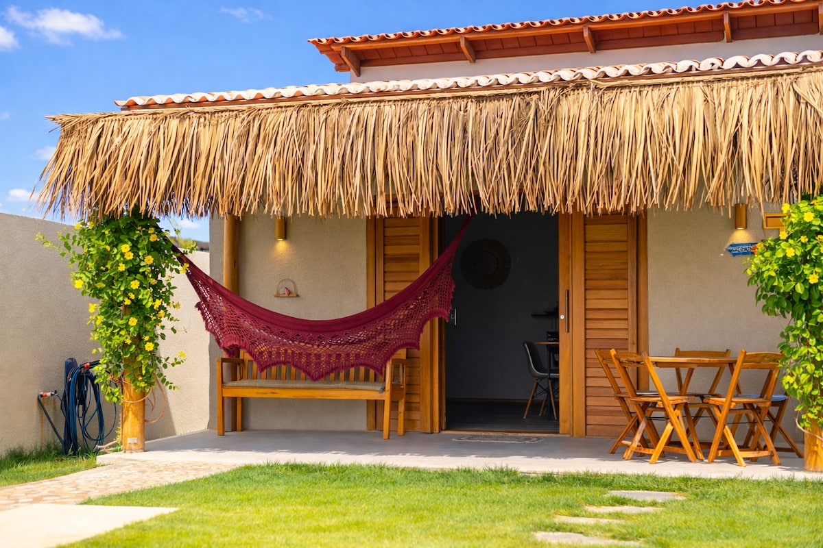 Šarmantni bungalov sa bazenom, dva apartmana i privilegovanom lokacijom na manje od 100 metara od plaže u Pontal de Maceió, Fortim, Ceará. Uživajte u nezaboravnim danima u ovom šarmantnom bungalovu. Sa dva prostrana apartmana, privatnim bazenom i udobnim dekorom, ima sve potrebne sadržaje za opuštajući i udoban boravak. Iskoristite prednosti opremljene kuhinje za pripremu jela i uživajte u trpezariji na otvorenom, okruženoj prirodnim ljepotama regiona.