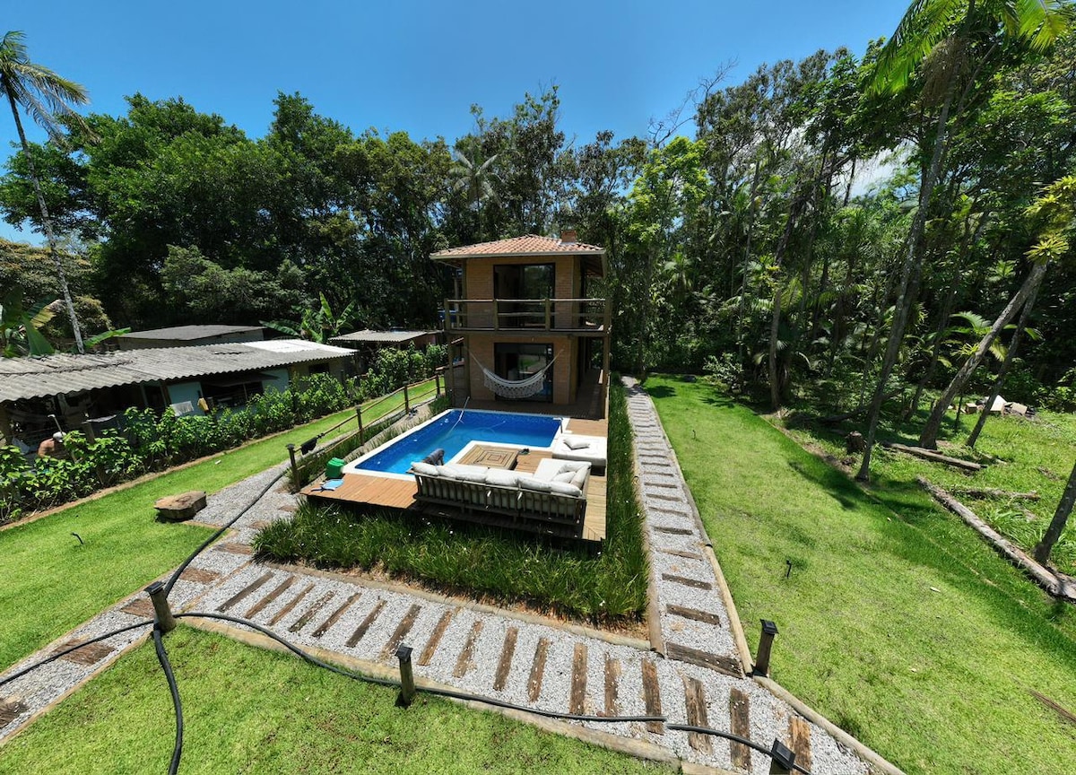 Dobro došli u svoj privatni smještaj u srcu očuvane atlantske šume Prumirim. Ova novoizgrađena kuća nudi jedinstven doživljaj, ujedinjujući luksuz, prirodu i udobnost. Njegova prepoznatljiva arhitektura integrisana sa okolnom šumom nudi jedinstveno iskustvo ugošćavanja usred prirode. Njegova lokacija je veoma blizu zadivljujuće plaže i vodopada Prumirim. Ova kuća je idealna za parove i porodice koji žele da se opuste i istraže ljepote regiona.