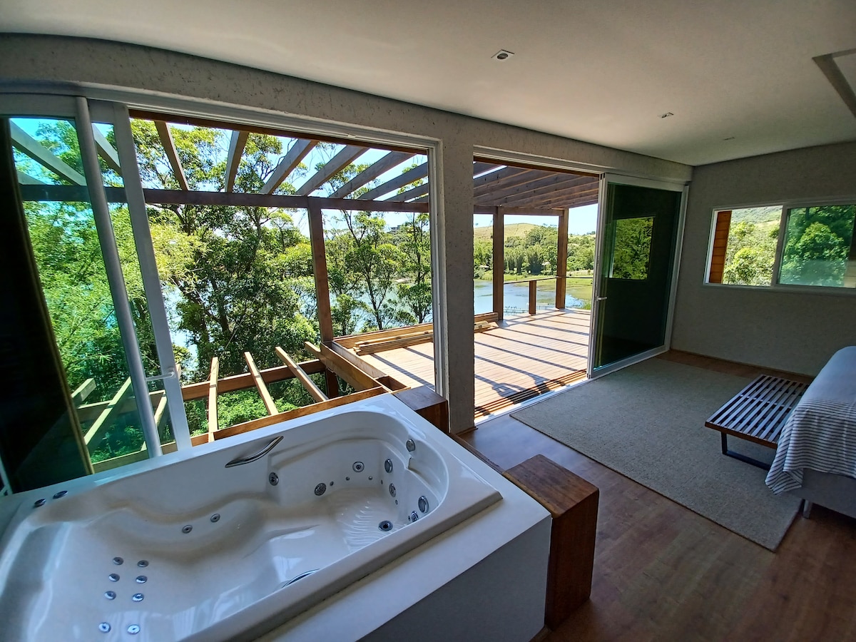 Naše utočište se nalazi visoko na planini, usred bujne Atlantske šume. Smještena u ekskluzivnoj ograđenoj zajednici, Casa do Céu Inn ima samo dvije jedinice, koje nude privatnost, bezbjednost i pogled na lagunu koji oduzima dah. Strateški smo pozicionirani među najpoznatijim plažama Garopabe: kratkom šetnjom stazom možete doći do Praia da Silveira; za samo pet minuta automobilom možete pronaći prelijepe plaže Ferrugem i Garopaba.