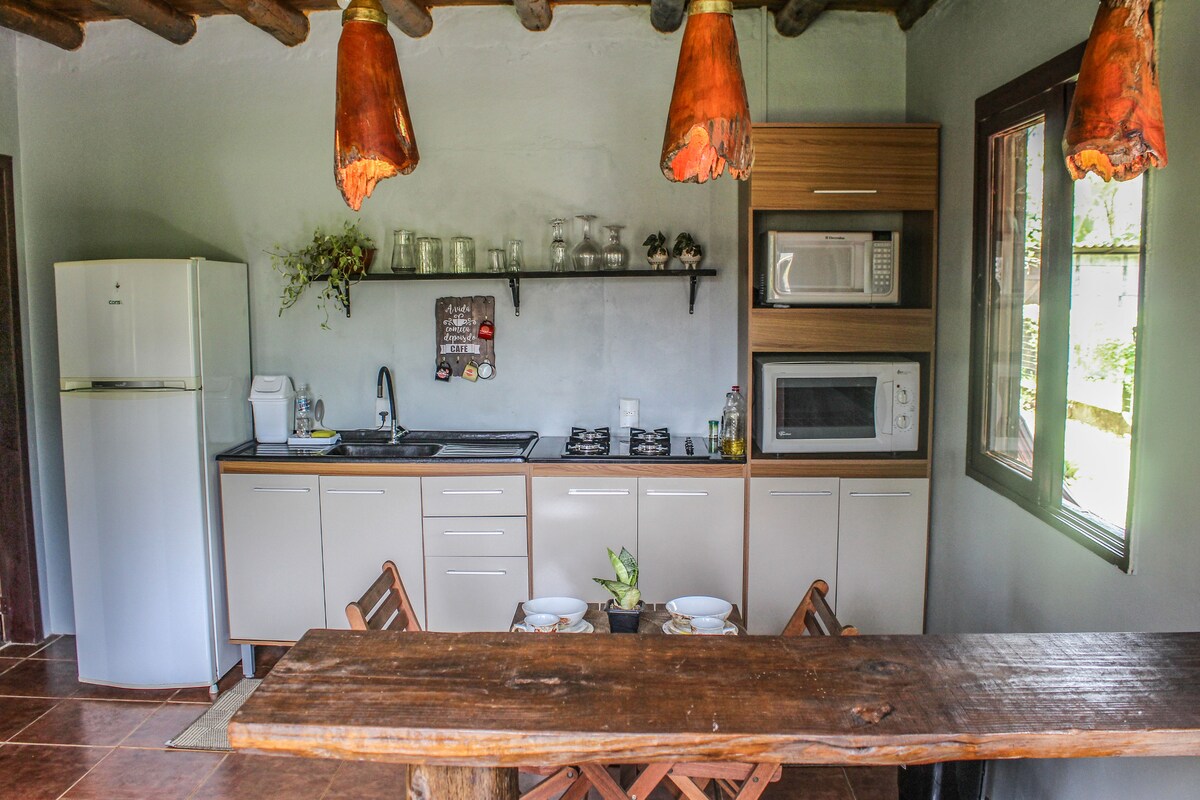✨ Utočište stvoreno da usporite Ekskluzivna planinska kuća za parove koji traže mir, privatnost i kontakt sa prirodom. Smeštena u ruralnom području, u Porto Koloniji – Dom Pedro de Alkantara (BR-101 km 11), naša brvnara je savršena za one koji žele odmor, tišinu i povezanost, sa obližnjim plažama u kojima mogu da uživaju tokom dana. Noću je atmosfera mirna, udobna i okružena zelenilom. Jednostavan i istinski doživljaj: udobnost, priroda i kvalitetno vreme za dvoje 💛
