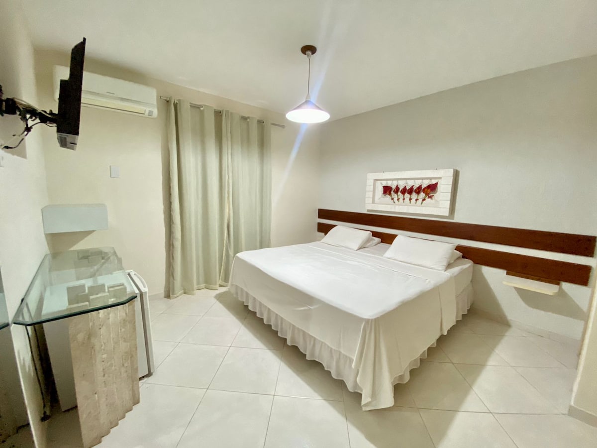 Flat novinho 4 bloka od Praia do Forte u Kabo Friu, sa TV-om, klima-uređajem, bračnim krevetom i bicama krevetom, plafonskim ventilatorom. Mala kuhinja sa mikrotalasnom rernom, mini barom, priborom za jelo, aparatom za kafu i aparatom za sendviče. Nudimo 200 žica, jastuka i peškira za kupanje. Super Bem Localo, u blizini banaka, pijaca, pekara i glavnih restorana. U samom centru grada.
