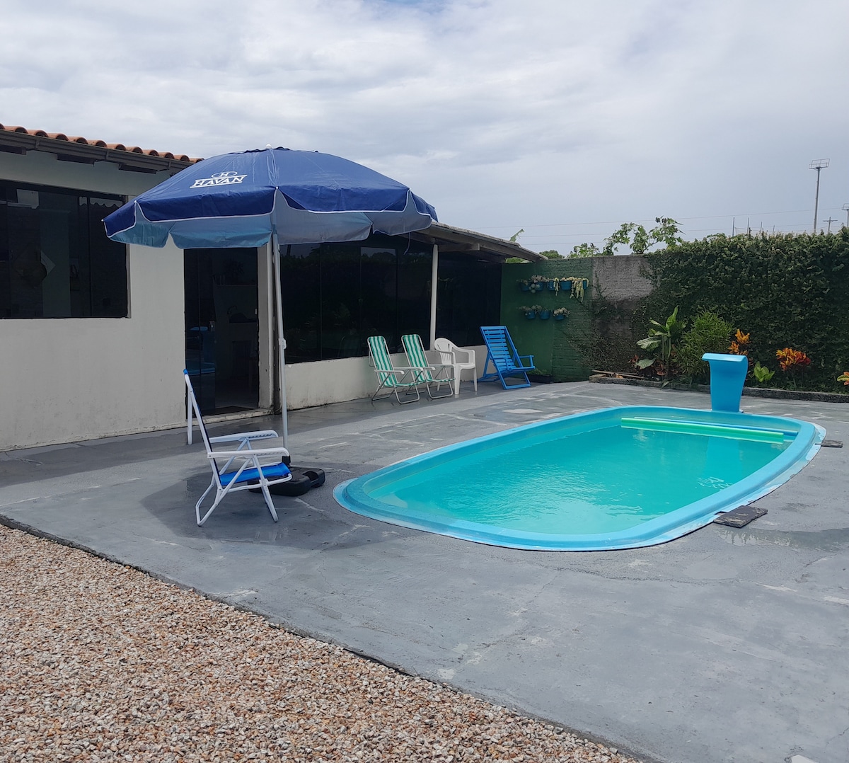 Naš prostor je dizajniran za naše goste. Imamo prostor površine 1500 m², bezbedno mesto, kompletnu i opremljenu kuću, bilijar sto, grijani bazen, prostor za hidromasažnu kadu, pristup privatnoj laguni, daskom za veslanje, kajakom itd. Naša lokacija je privilegovana za prirodne ljepote, nalazimo se oko 2 km od Praia do Rosa, ali pored ove prelijepe plaže, postoje i druge prelijepe plaže u regionu, kao što su Ouvidor Beach, Barra de Ibiraquera Beach, Praia do Luz, itd.