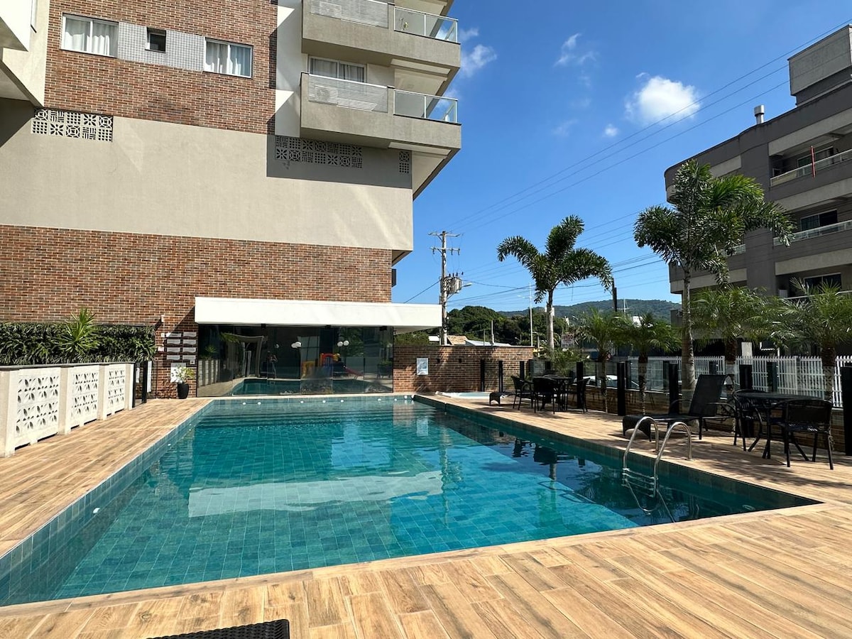 Apartamento completo para uma estadia incrível, contém sacada com churrasqueira, internet fibra óptica, ar condicionado quente/frio, cozinha completa com eletrodomésticos como forno elétrico, microondas, liquidificador, sanduicheira e cafeteira. Pode-se utilizar as áreas comuns do condomínio, como piscina externa e piscina aquecida, sala de jogos, sauna e academia . O apartamento fica próximo ao comércio local e à 450 metros da praia de Bombas. Estacionamento para 1 carro dentro do condomínio.