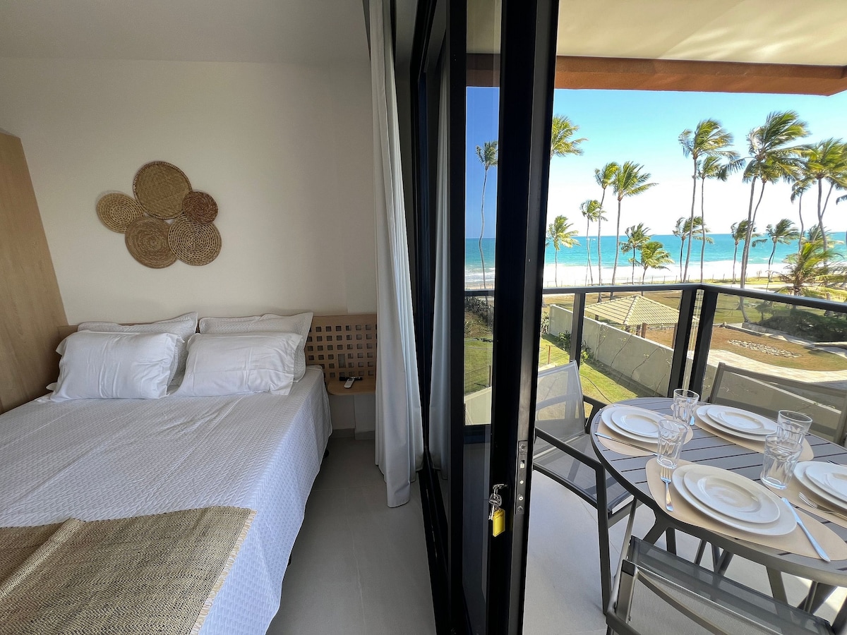 Acorde com uma VISTA PANORÂMICA para o mar e viva Porto de Galinhas em um flat beira-mar pensado para unir conforto, sofisticação e uma experiência realmente especial. Localizado em condomínio novo, com rooftop panorâmico, piscina, deck frente praia e estrutura com cadeiras e guarda-sol, o apartamento oferece o equilíbrio ideal entre descanso à beira-mar e fácil acesso ao centrinho e às piscinas naturais (900m). *Ar-condicionado sala/quarto, cozinha equipada, Wi-Fi e estacionamento*