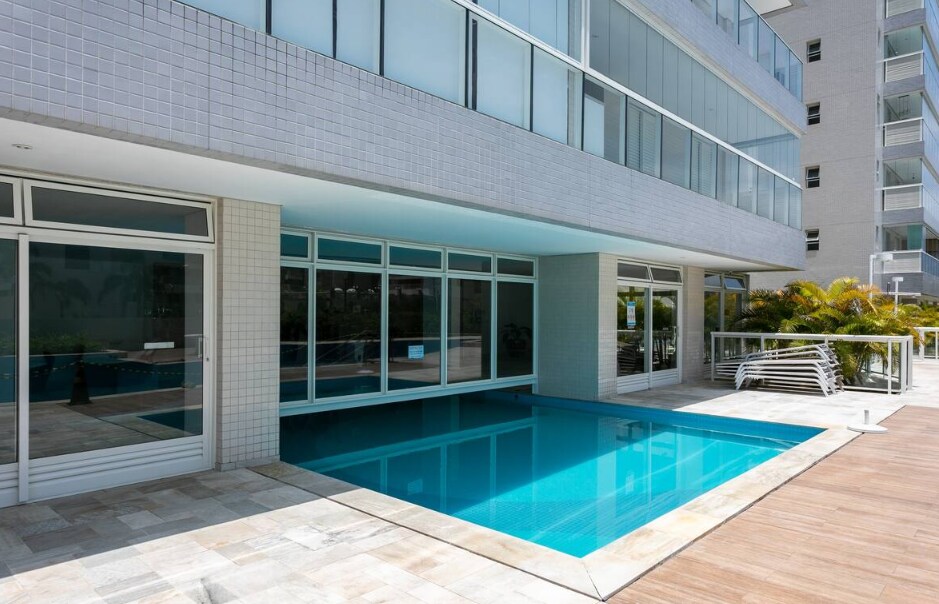 Beautiful apartment with a pool view. Well equipped, cozy, and in a prime location: between São Lourenço, Riviera, and Itaguaré beaches. It offers beach service, air conditioning in the living room and both bedrooms, two TVs, high-speed internet plus a full Claro TV channel package, dishwasher, washer-dryer, Electrolux water dispenser, complete kitchen utensils, towels, and bed linen. Everything is of high quality to ensure a comfortable and enjoyable stay for you and your family.