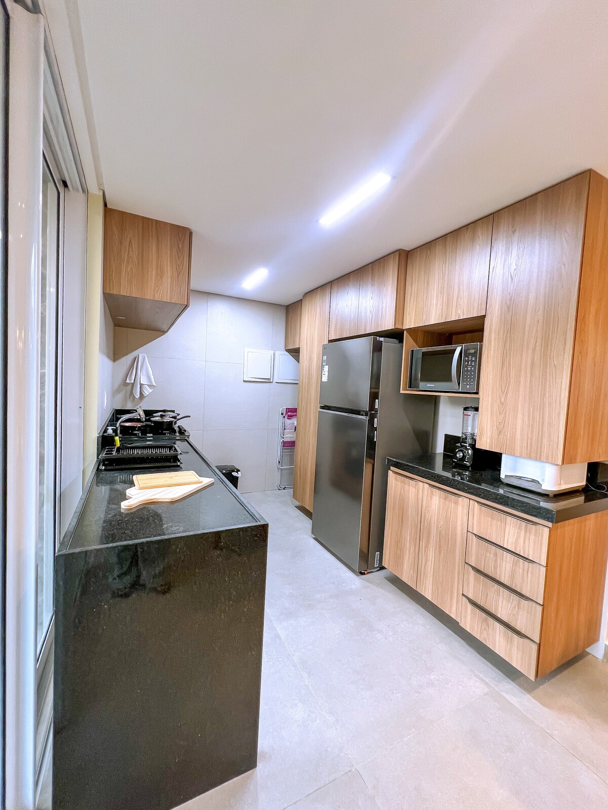 U blizini plaže Patačo, naš smještaj je osmišljen da ponudi sve što cijenimo na našim putovanjima. Sa dva kompletna apartmana za najviše šest odraslih osoba, privatnim balkonom sa roštiljem, klima-uređajem u svakoj sobi, potpuno opremljenom kuhinjom i mašinom za pranje i sušenje veša! Garantujemo vam jedinstven boravak! Pored toga, imaćete pristup kondominijumu u stilu odmarališta sa teretanom, bazenom, đakuzijem, igralištem i recepcijom koja radi non-stop. Lokacija je odlična, u blizini su restorani i prirodne ljepote Milagresa i Japaratinge!