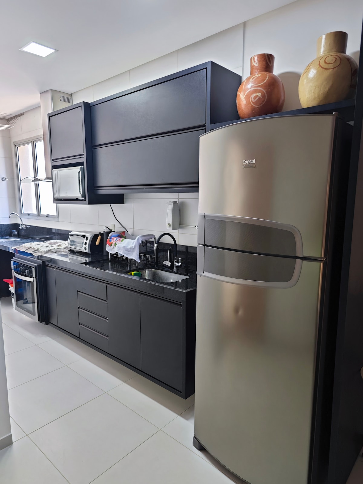 Dobro došli u Orla Morro Stay - vaše ekskluzivno utočište u Guarapariju! Uživajte u nezaboravnim danima uz more u ovom prostranom i kompletnom stanu sa porodicom i prijateljima, sa više od 200 m udobnosti, slobodnim vremenom i predivnim pogledom na plažu Moro, sa privilegovanom lokacijom u blizini prodavnica. Ima 4 spavaće sobe (3 sopstvene spavaće sobe) sa 1 bračnim krevetom, 2 bračna kreveta, 2 dodatna dušeka za jednu osobu, 4 kupatila, privatni roštilj, veliki dnevni boravak, potpuno opremljenu kuhinju i balkon sa spektakularnim pogledom. 2x garaža