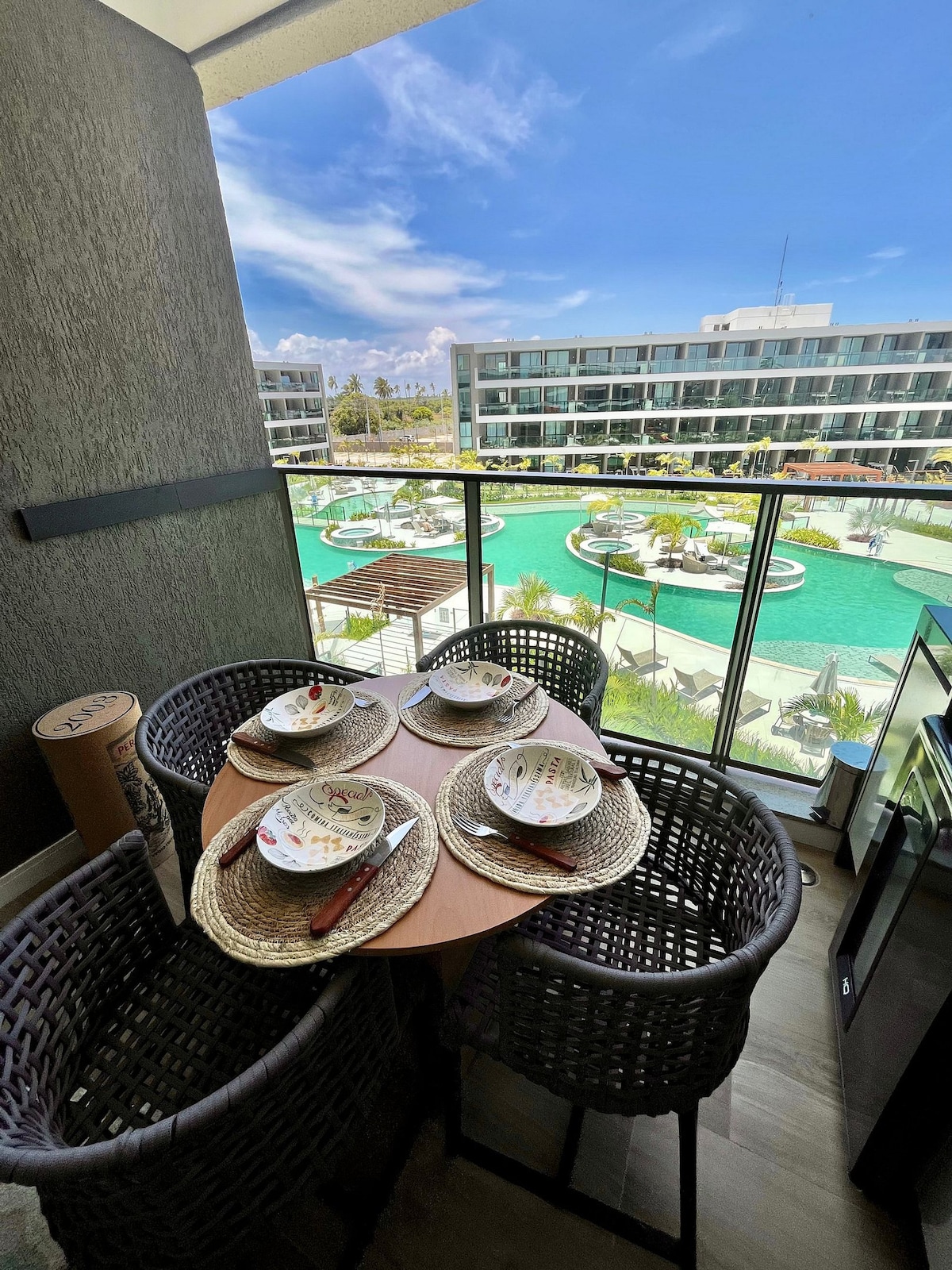Hospedagem com muito LUXO e sofisticação? encontrou nosso incrível flat, montado com itens de alto padrão para proporcionar o máximo de conforto aos nossos hóspedes. Com 1 Cama Queen com extremo conforto, 1 cama auxiliar de qualidade e um excelente sofá cama, acomodamos bem até 4 hóspedes. O Flat possui uma decoração sofisticada que proporciona um ambiente relaxante após um dia de passeios em Porto de Galinhas e Muro Alto. A Cereja do Bolo é nossa varanda gourmet com uma ótima mesa, confortável e moderna para refeições e vista para o complexo aquático do empreendimento. A cozinha completa é equipada com os principais eletrodomésticos, como geladeira duplex, microondas, cooktop, cafeteira, liquidificador, sanduicheira e airfryer, além de todos os utensílios necessários para que você possa preparar suas refeições de maneira prática e confortável. O espaço foi projetado para que você tenha tudo o que precisa ao seu alcance, garantindo uma estadia sem defeitos. O apartamento está localizado em um condomínio que oferece uma estrutura completa de lazer com várias piscinas, playground, campo, academia, brinquedoteca, carregamento para carro elétrico, lavanderia, etc.. Temos Ferro de passar e secador de cabelos para maior comodidade dos nossos hóspedes. Se você busca uma acomodação premium, com bastante conforto e espaço, acabou de encontrar o que procura. Atenção: Bebês devem ser cadastrados como crianças ou adultos em sua reserva. (precisam contabilizar no número total de hóspedes)
