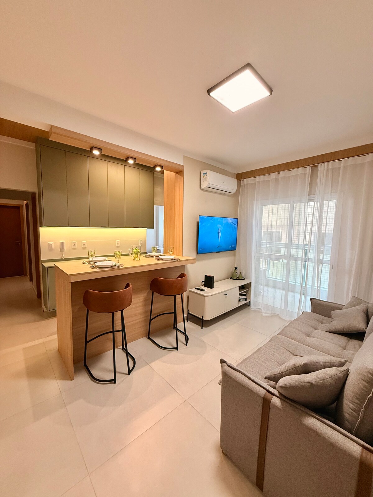 Ovaj stan od 55 m² je idealan za parove i rukovodioce na poslovnim putovanjima. Ima sve što biste očekivali od stana: praktičnost i tehnologiju. Za one koji dolaze da provedu novogodišnje veče u Santosu, možete uživati u svečanostima bez napuštanja zgrade. Iz prostora oko bazena možete da uživate u pogledu na more, vatrometu i svečanoj atmosferi grada bez potrebe da se bavite saobraćajem, gužvom ili napornim putovanjem nakon vatrometa.