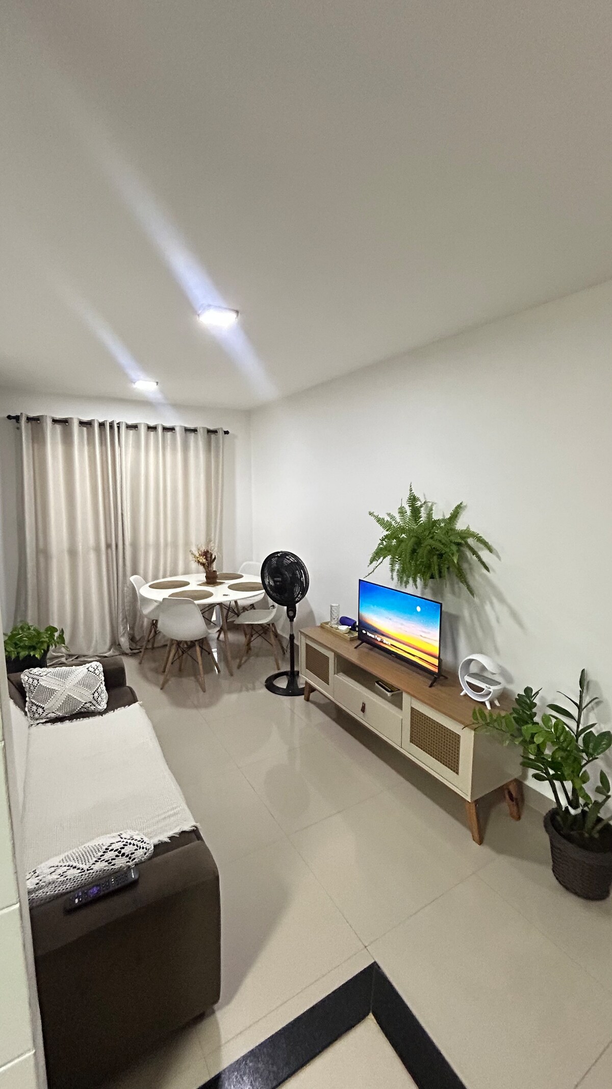Desfrute do conforto e elegância neste apartamento moderno, a poucos metros da praia! Com decoração charmosa, espaço aconchegante e cozinha completa, é o refúgio perfeito para relaxar. Aproveite a iluminação natural, a área de jantar sofisticada e um ambiente bem equipado para sua estadia. Ideal para casais, famílias ou trabalho remoto. Venha curtir dias inesquecíveis com todo o conforto!