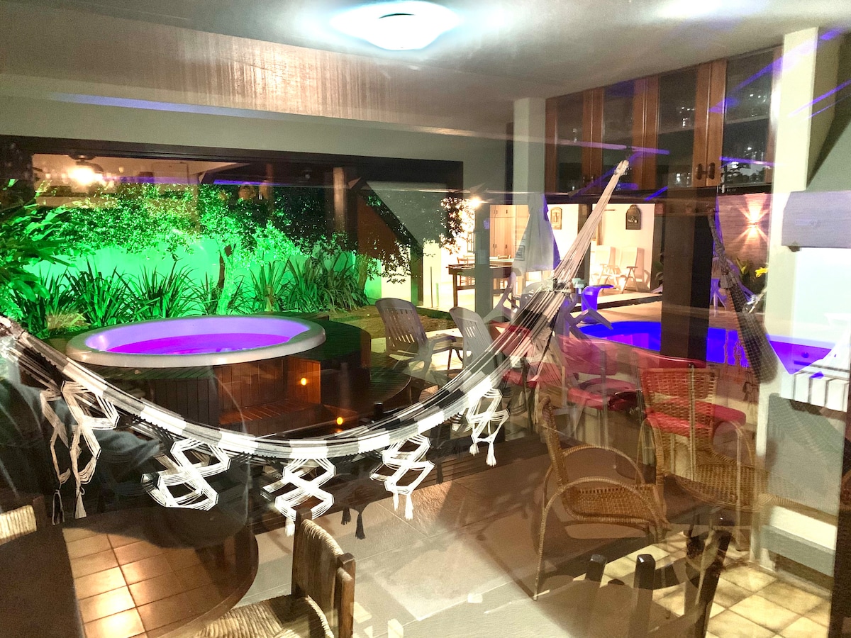 Apartman sa privatnim ulazom, Solariunom i terasom. Bazen (grijani jacuzzi) Potpuno privatni prostor za odmor, gurmanski balkon, roštilj, šporet, frižider i osnovni kuhinjski pribor. Staza ekološkog rezervata Santinjo i Mozambika, dine…. Pažnja: pristup samo gostima, posjetiocima je izričito zabranjen, upotreba soli i pjena u bazenu i đakuziju je zabranjena. (Fine R$:300 reais) Jacuzzi use time 16:00 to23:50hs