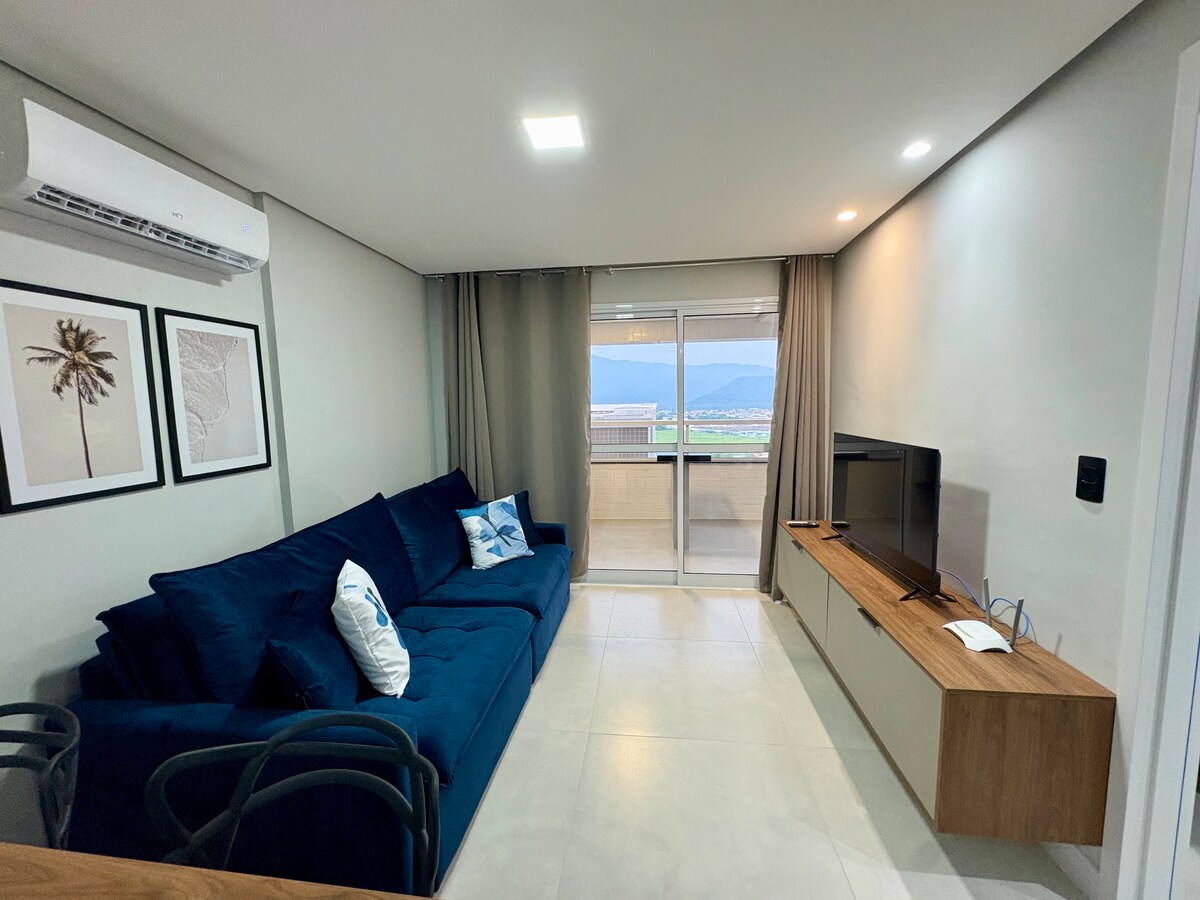 New apartment by the sea in Praia Grande, with incredible views, ideal for up to 5 guests. There are 2 air-conditioned suites, bathrooms with hairdryer, a toilet, fully equipped kitchen, two SmartTVs, terrace and high-speed Wi-Fi. The master suite has a Smart Projector and home office space. Close to McDonald's, the bus station, bakeries, ice cream parlors, restaurants, markets and conveniences, all within walking distance. It has a washing machine and 1 parking space.