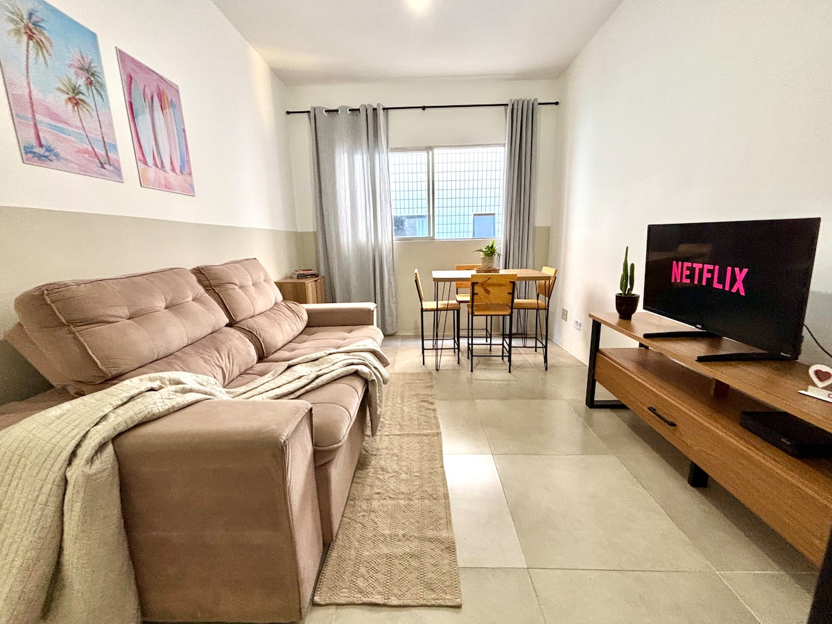 This 55m² apartment is ideal for couples and executives on business trips. It has everything you'd expect from an apartment: practicality and technology. For those coming to spend New Year's Eve in Santos, you can enjoy the festivities without even leaving the building. From the pool area, you can enjoy the sea view, the fireworks, and the city's festive atmosphere without having to deal with traffic, crowds, or a tiring commute after the fireworks.