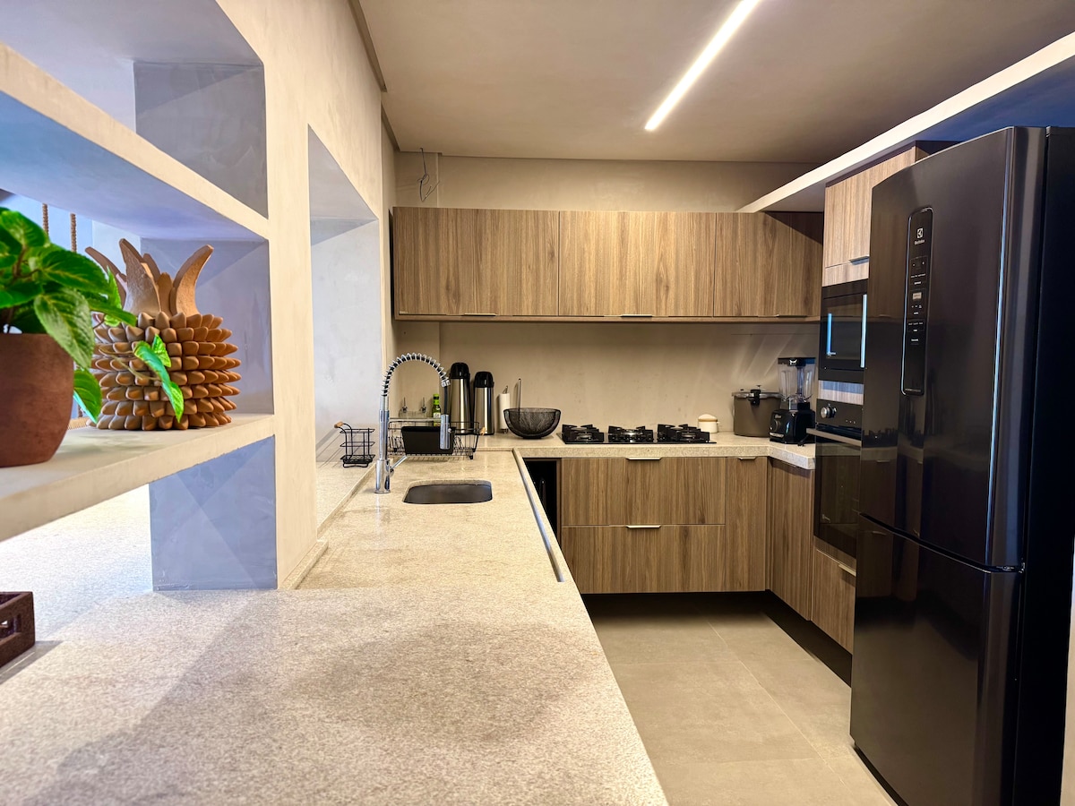 Samo nekoliko minuta hoda od plaže Praia de Lages, Loft spaja industrijski dizajn sa drvetom, glinom, betonom i bujnim zelenilom inspirisanim putovanjima širom sveta. Između okeana i mangrova, čujete talase i divite se jednom od najlepših zalazaka sunca u regionu. 🚲Dva bicikla su dostupna uz naknadu za održavanje, pozivajući vas da istražite region iz druge perspektive. Dođite da živite najbolje dane u Kažu! 🩵