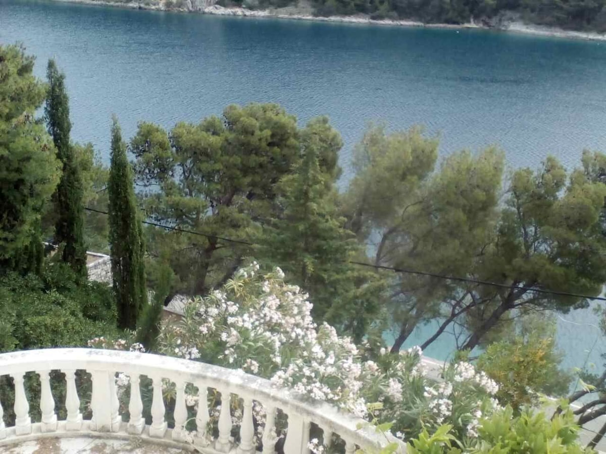 Stone Beauty from 1467, cultural monument located in the historical core of Pučišća - one of the 15 most beautiful small towns in Europe. The restorted medievel castle will give you moments of peace and quiet because the front of the castle is facing the sea and the town and behind there is a garden, a courtyard and three terraces for moments of rest. The first floor apartment consists of a dining and living room, kitchen, bathroom and bedroom with a view of a garden.