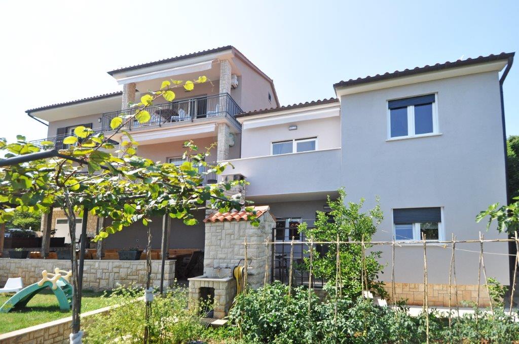 Apartman je okružen zatvorenim vrtom (veličine 500 kvadratnih metara) sa livadom i drvećem. 2 sobe (od toga 1 spavaća soba), 25 kvadratnih metara za 3 osobe. Ulaz na 1. sprat, preko spoljnog stepeništa i balkona u dnevni boravak sa kuhinjom. Spavaća soba sa 1 bračnim krevetom i 1 krevetom. Praktično uređen apartman nalazi se u kući u nizu i na mirnoj i sunčanoj poziciji. Prilaz preko sporednog puta (asfaltiran). Jadranska obala (plaža 500 m sa šljunkom i betonskim platoom).