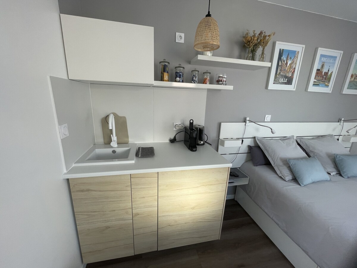 Kuća od 45 m2, 200 m2 bašte potpuno privatna i bez suprotnosti, nova, sve udobnost. Smješten u srcu Weppesa, u blizini Lila i u podnožju Flandrije, možete uživati u prednostima sela. Nalazi se u bocager okruženju, u blizini se nalaze brojne okolne aktivnosti: pješačka i pješačka staza, konjički centar, golf, muzej Louvre-Lens, sjeverne plaže, istorijske znamenitosti, prodavnice,...