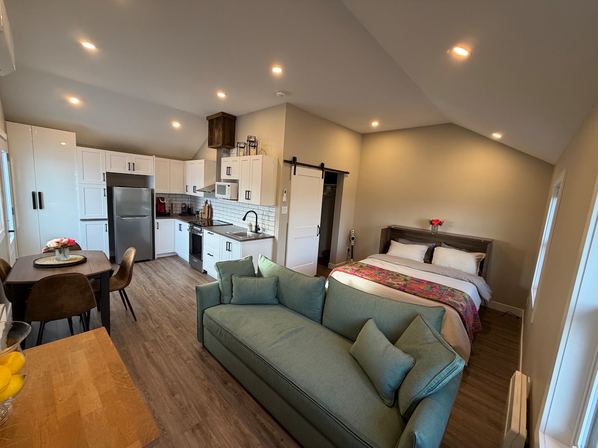 M 's Studio je vaš drugi dom. Mirni podrumski stan sa glavnim apartmanom, luksuznom vrhunskom kuhinjom, mašinom za pranje i sušenje veša u apartmanu i kaučem koji se pretvara u bračni krevet. • 20 minuta hoda / 4 minute vožnje do fabrike sira Svetog Alberta da biste probali njihove čuvene skute od sira • 20 minuta vožnje do vodenog parka Kalipso, najvećeg vodenog parka u Kanadi • 40 minuta vožnje do centra Otave