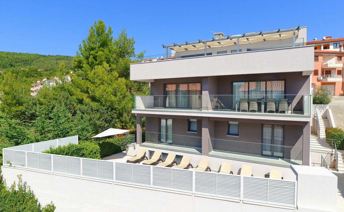 Verbringen Sie Ihren Traumurlaub in dieser modernen Villa bei Labin, nur 15 Minuten vom Meer entfernt. Die Villa bietet Platz für bis zu 6 Personen mit 3 klimatisierten Schlafzimmern, jeweils mit eigenem Bad. Genießen Sie den Infinity-Pool, eine voll ausgestattete Küche und den Essbereich im Freien. Erkunden Sie Istrien, mit Stränden, Wanderwegen und der historischen Altstadt von Labin in der Nähe. WLAN, Waschmaschine und Geschirrspüler sind ebenfalls vorhanden. Buchen Sie jetzt!