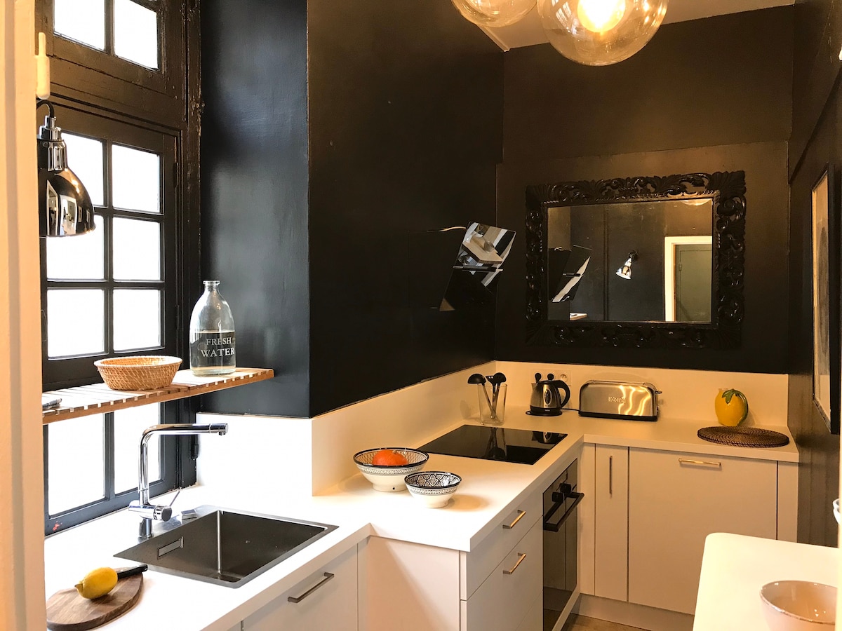 U poludrvenoj zgradi iz 18. veka, nudimo vam naš šarmantni apartman koji se nalazi u istorijskom pešačkom centru Vana. Lokacija je jedinstvena, a naš stan je veoma prijatan, topao i svetao sa svojih 5 velikih francuskih prozora, tih i istovremeno idealno smešten u srcu intramurosa da otkrijete srednjovekovni grad i zaliv Morbijan.