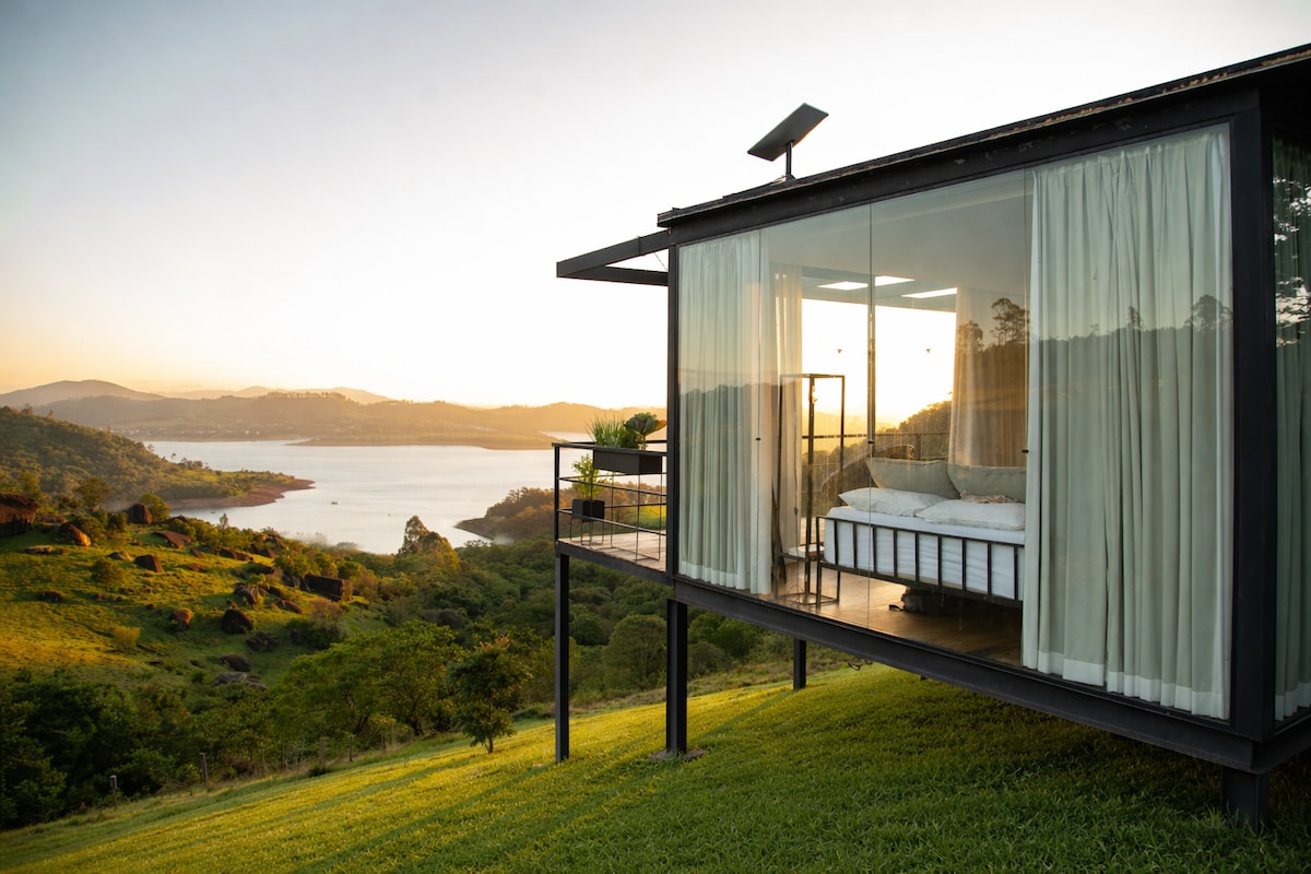 Pico360 - pogled na branu, moderna staklena planinska kuća.