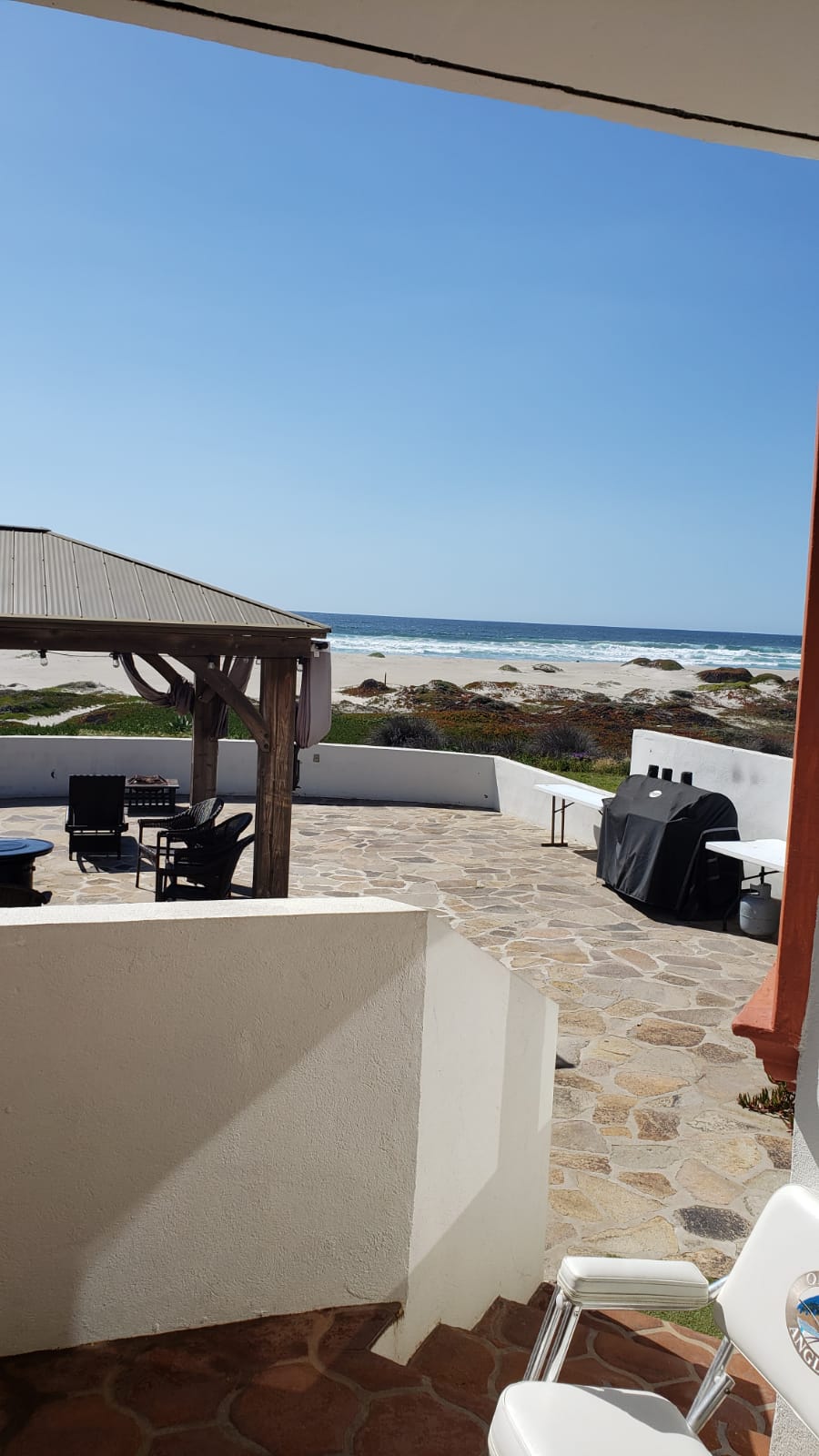Wonderful location 5 mins away from dowtown Rosarito & only 18 mins away from the border, only scenic route driving making it easy to reach and extremely safe. The house has a small gym area, a working complete with a desk & hardline ethernet connection in addition to WiFi via 3 extenders to ensure full coverage. It has a wonderful ocean view with fully openable window of four sheets of glass, excellent breeze and floor to ceiling windows on both floors. Comfy bbq grill with a firepit in back!
