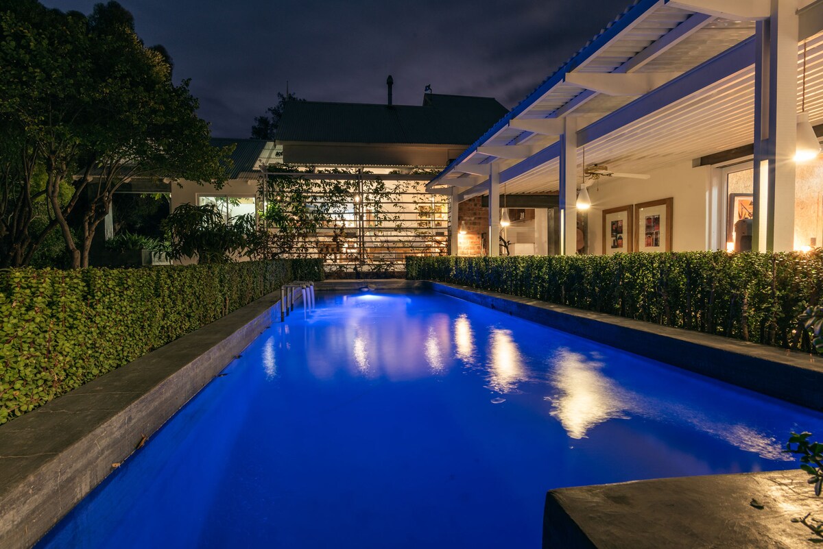 The Pool House is a 2-bedroom Free-Standing Unit with an en-suite bathroom. This suite was designed with sound in mind, perfect for playing the piano, listening to music, or watching your favorite TV shows with high quality sound. - Fast 5g-Ready Wifi Network - Solar Powered - Cleaning Services - Laundry Services - 100% Pure Cotton Linen from T-Shirt Bed Co. - Dedicated Working Space - 2 Fireplaces - Airconditioning - 50" Smart TV with Disney+, Netflix, and DSTV Premium - Private Entrance