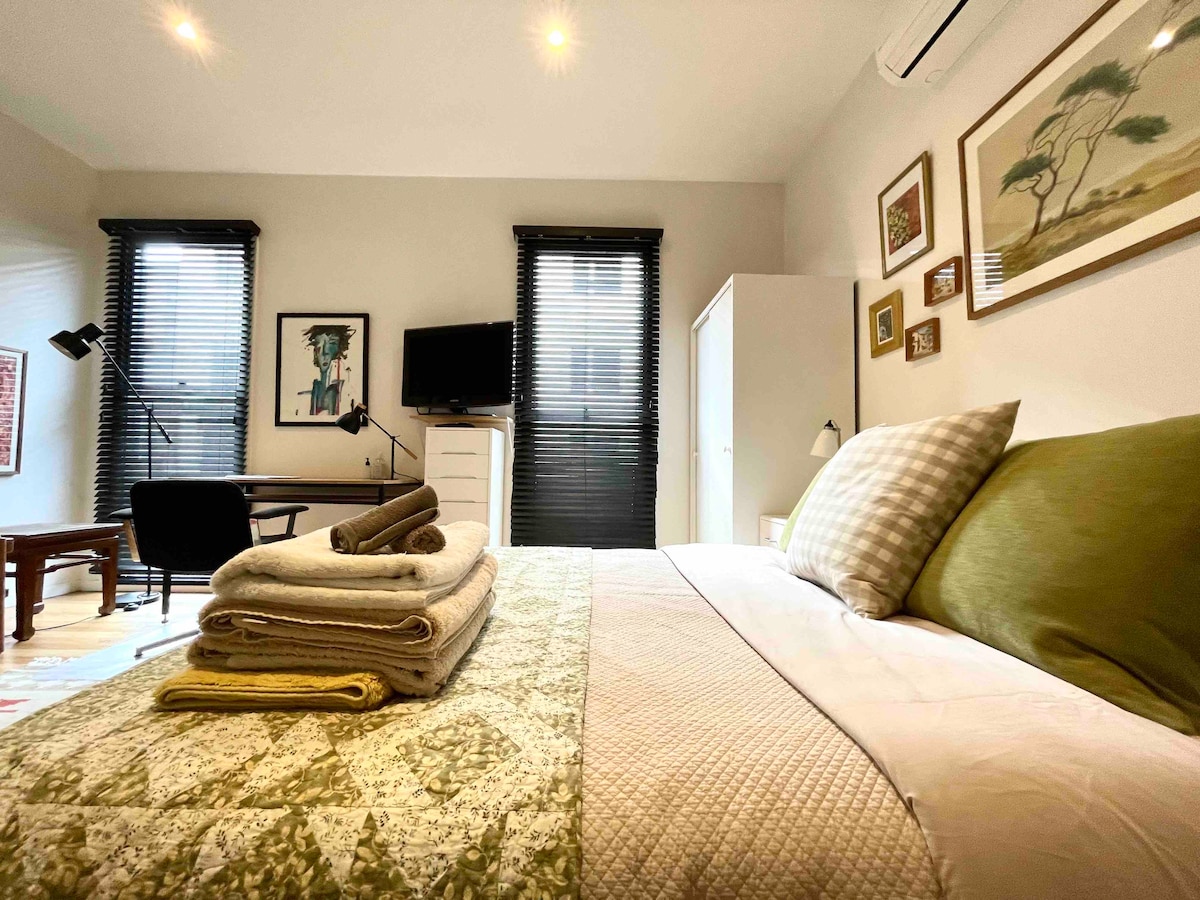 Veliki studio apartman ispunjen svjetlom. Ukrašena skandi-minimalističkom paletom. Ovaj dobro opremljen dom nudi kompletnu kuhinju sa indukcionim objektima za kuvanje, rernom za konvekciju i svom opremom za pripremu romantičnog obroka. Prostor za spavaću sobu ispod visokih nadsvođenih plafona sa bračnim krevetom, luksuznim dušekom i egipatskim pamučnim čaršavima, opuštajući je i prozračan prostor za opuštanje nakon cjelodnevnog istraživanja. Elegantno i moderno kupatilo koje se može pohvaliti kišnim tušem pravi je način da se opustite i upijete jutra u Melburnu. Gosti imaju pristup svom privatnom ulazu i dvorištu sa baštom na otvorenom za doručak i deljenje pređe pored male bašte organskog bilja. Mišel i ja smo vam na raspolaganju za sva pitanja, visoke priče i preporuke o tome šta da radimo u Melburnu. Smješten unutar zelenila i parkova Princes Hill i Historic Carlton, to je kratka šetnja do sela Rathdown Street i čuvenih restorana „Little Italy” u ulici Lygon St. Zatim se smjestite za film u lokalnom Arthouse Cinema Nova. Nalazimo se na 5 minuta hoda do tramvajskih linija koje vode do grada, Sidneja i Brinsvika Istok, a parking je dostupan oko doma ili je dostupan samo bicikl kao pravi mještanin.