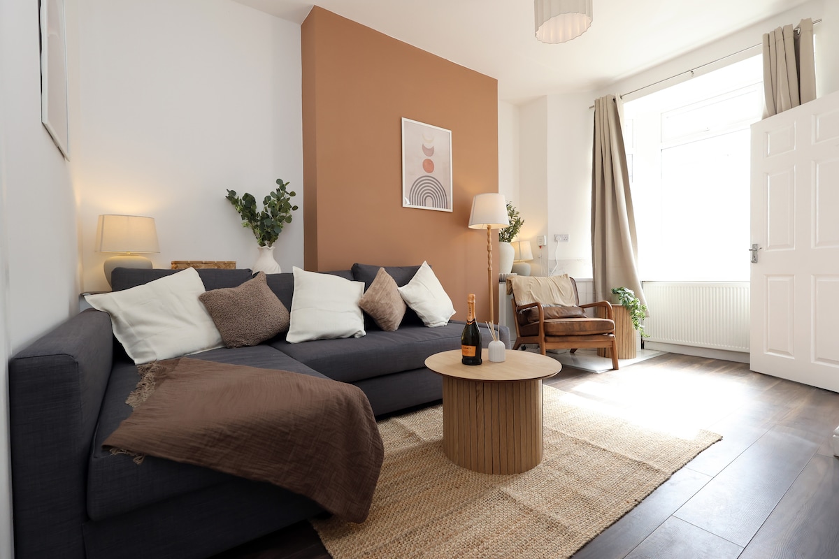 Novouređena kuća s terasom s 3 spavaće sobe dostupna za iznajmljivanje u srcu grada. Samo 5 minuta hoda do stadiona Kneževine i dvorca Kardif. - parking dostupan za ulicu, vozila moraju biti registrovana onlajn - 3 spavaće sobe - 6 kreveta za jednu osobu, 2 kreveta za jednu osobu u prednjoj spavaćoj sobi mogu da se naprave u bračni krevet ako se to zatraži - 3 kupatila, dva sa tuševima - potpuno opremljena kuhinja, pribor, mašina za pranje veša, sušilica i mašina za pranje sudova - 1 kauč u prizemlju