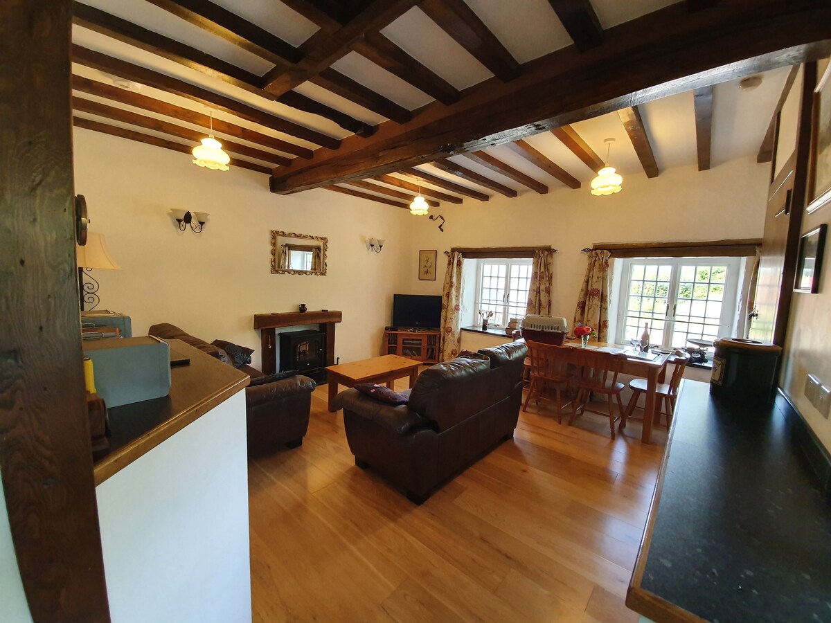 Dating from 1762, this beautiful stone cottage is full of period features, beamed ceilings and a huge inglenook fireplace. Lovely rural hillside location in a courtyard setting, 2 miles from the main road along a country lane, but only 9 miles from Ruthin. Enjoy the lovely private garden, watch the birds or stargaze at night whilst sharing a bottle of wine in the 'Piggery'. Perfectly placed for all that North Wales has to offer. Great for couples, adventurers, families and dogs. Car essential.