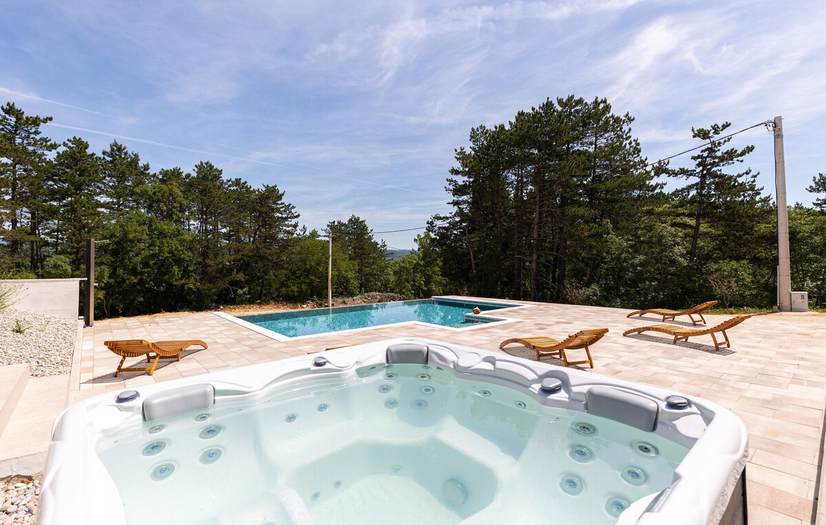 Villa is located in Prolozac 30 km from the sea. Can sleep up to 22 people. Main house offer you four double bedrooms, two bathrooms, kitchen with dining table and living room. Two separate apartment are next door to main house, offer you separate entrance, kitchen, bedroom, bathroom and living room. Brend new house offer you three double bedrooms, two bathrooms, kitchen with dining table and living room. In front of everything you have huge terrace more than 180m2 and lovely pool and hot tub