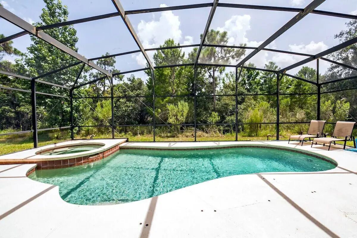 Prekrasna vila sa 3 spavaće sobe i 2 kupatila smeštena na zemljištu od 1/4 hektara, sa sopstvenim ekranom, privatnim, grijanim bazenom i đakuzijem i brzim internetom. Nalazi se u mirnoj stambenoj zajednici na traženoj četvrti Sunridge Woods u Devenportu, samo 9 milja od Diznija. Imajte na umu da pušenje i zabave NIJESU dozvoljeni u smještaju. Grijalica za bazen nije dostupna u periodu od maja do oktobra. ** Takođe MORATE DA imate 21 ili više godina da biste mogli da iznajmite ovaj objekat**